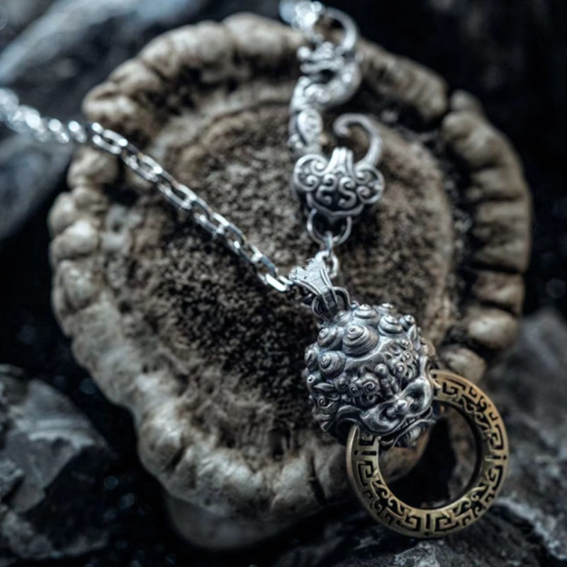 Color: TD-204 lion rings pendants: no chain, TD-204 pendant keel chain, TD-204 pendant pearl chain, TD-204 pendant cross chain