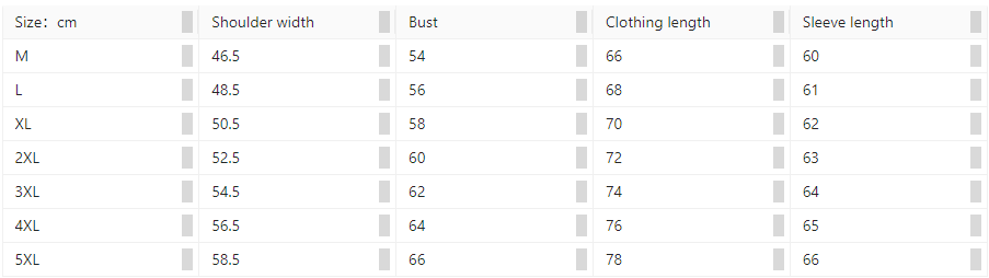 Size: M, L, XL, 2XL, 3XL, 4XL, 5XL