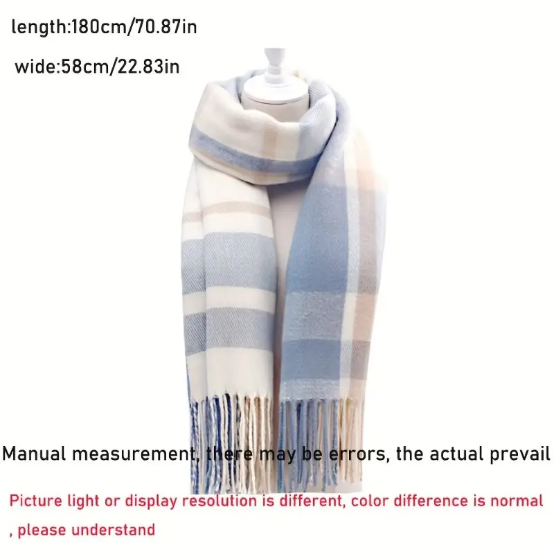Couple Winter Scarf - Thick Warm Polyester Tassel Shawl Wrap, 180x70cm Unisex Scarves For Women & Men, Christmas Thanksgiving Gift