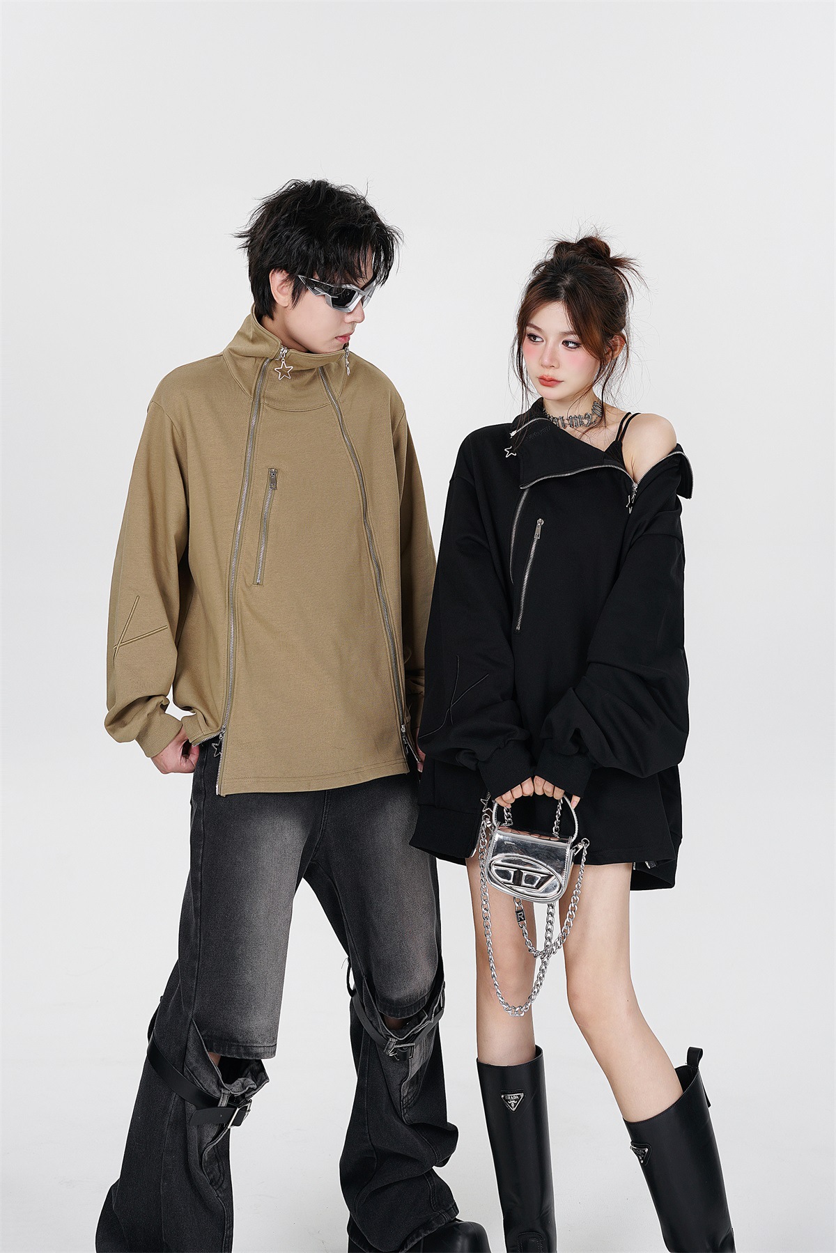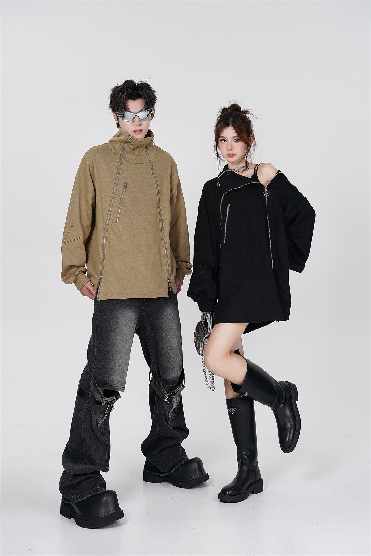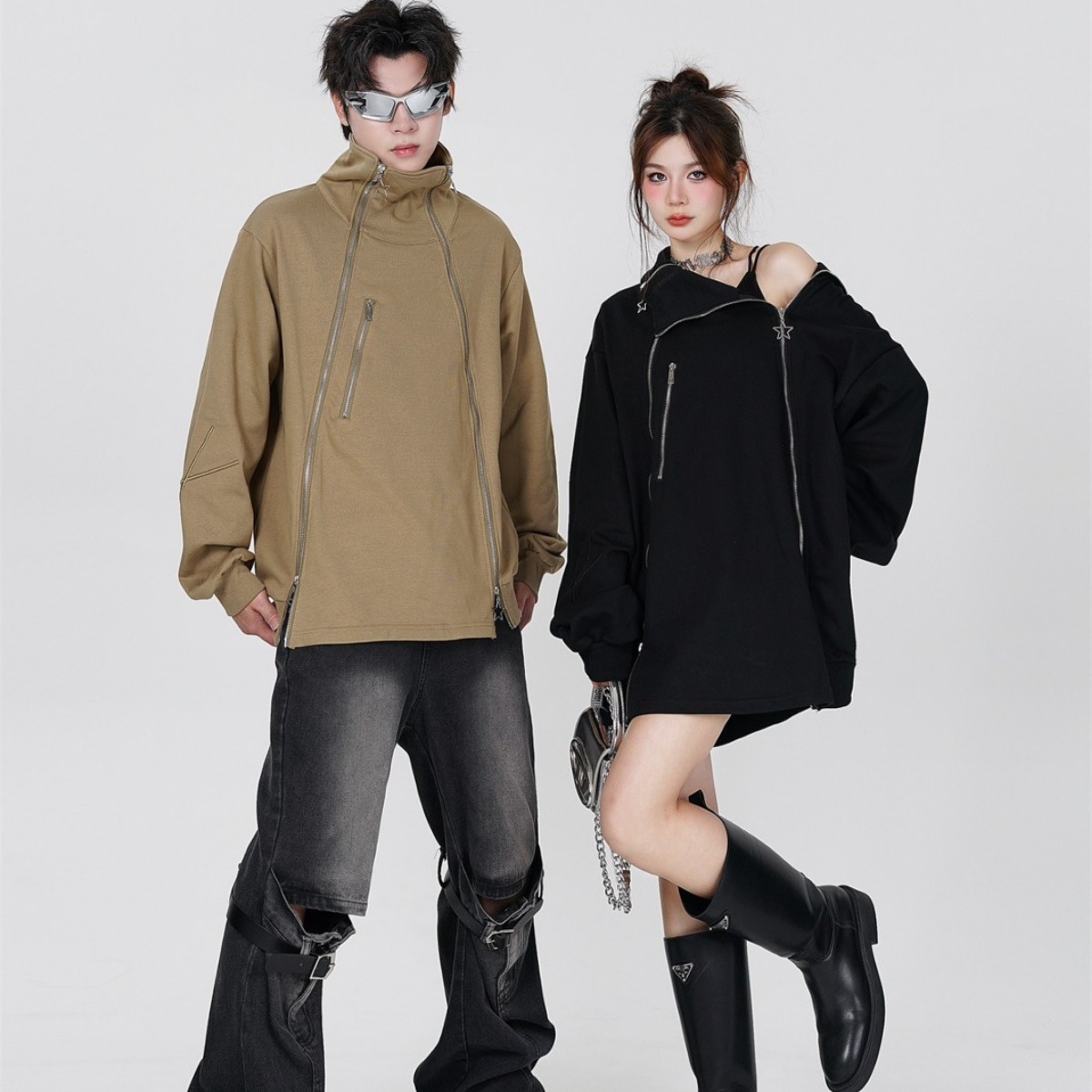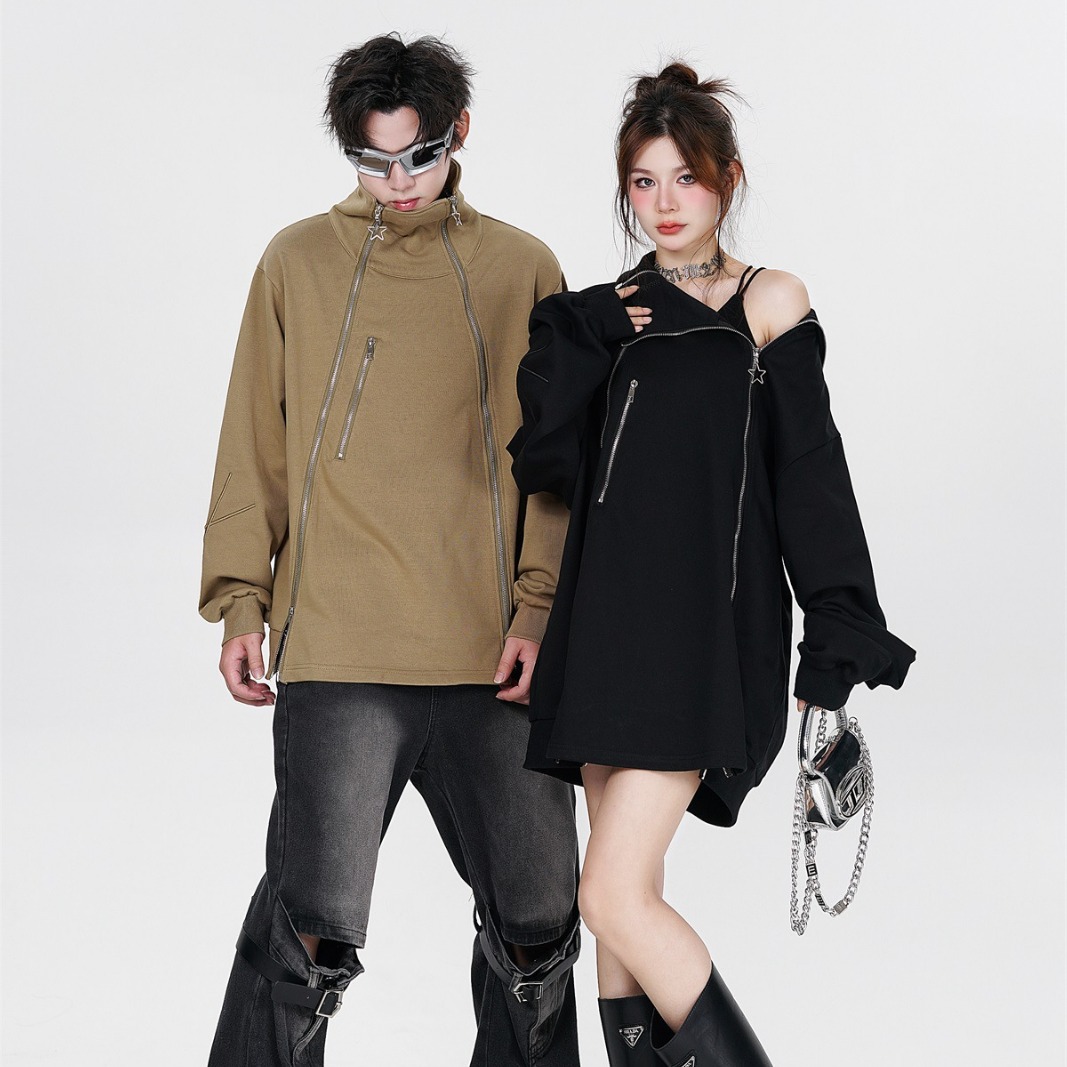 Couple's Double Zipper Neutral Loose Coat