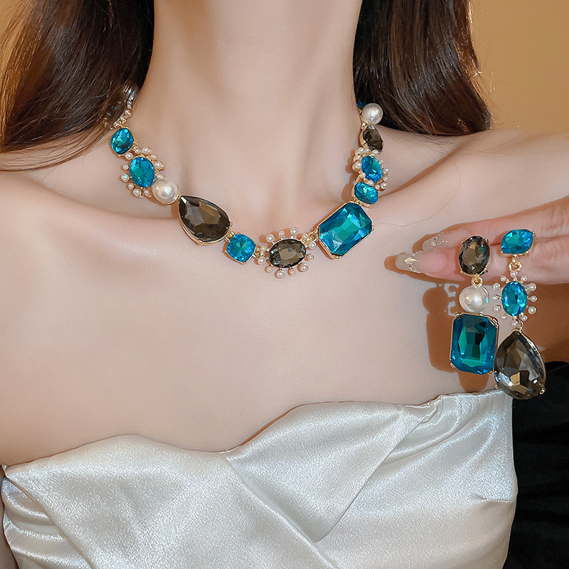 Color: Silver Needle-blue water drop earrings, blue water drop necklace