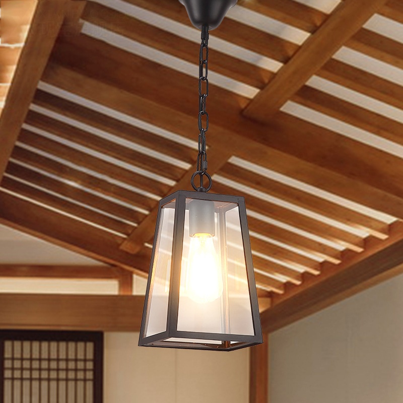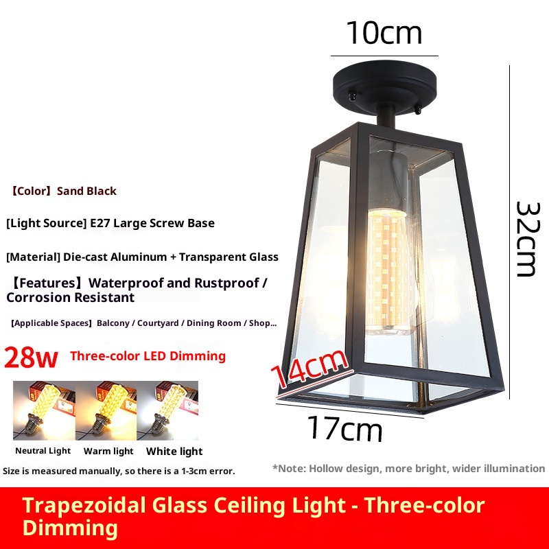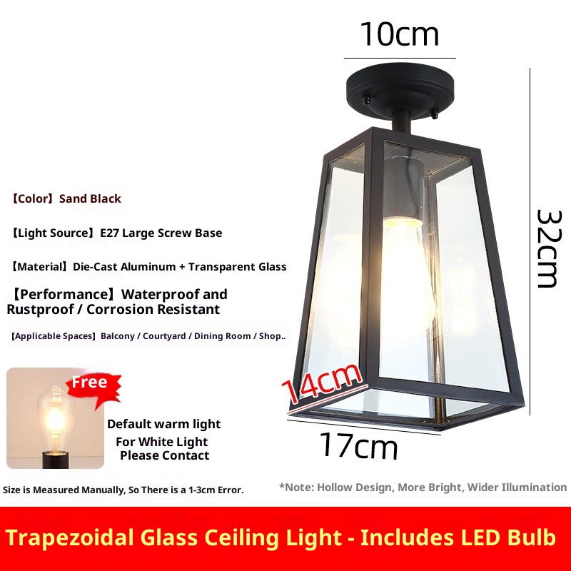 Light color: trapezoidal glass ceiling lamp_sand Black (send Edison bulb, trapezoidal glass ceiling lamp_sand Black (three-color LED bulb,