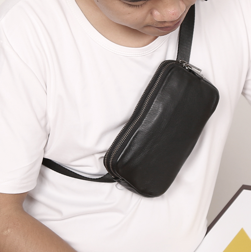 Product information :Texture: cowhideClosure mode: zipperShape: horizontal sectionSize Information:Size: 18/10/3.5cmPacking list:Chest bag *1