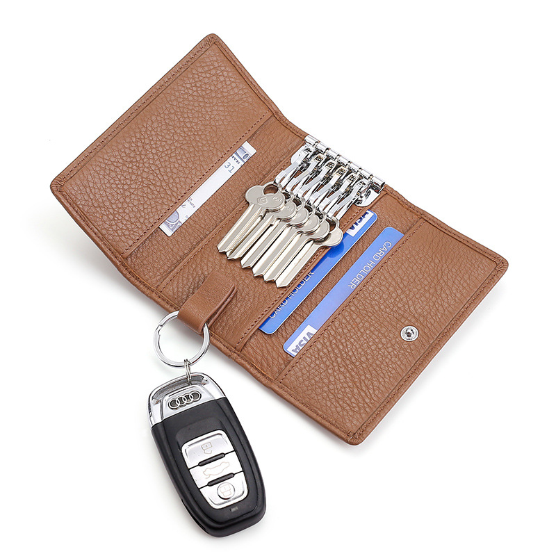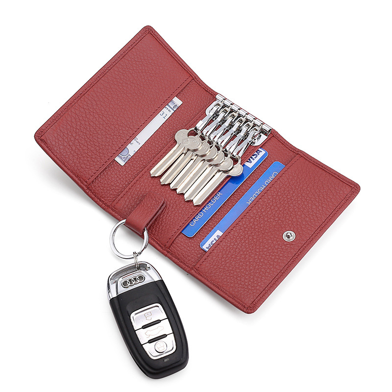 First layer cowhide household key case leather car door key case multi-color multi-function coin purse zipper bag