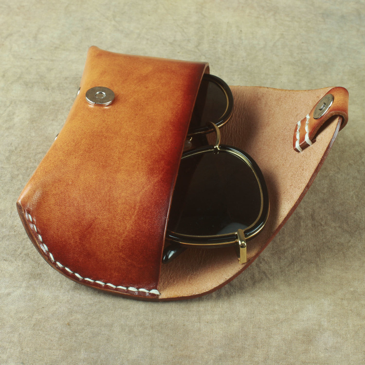 Craftsmanship handmade retro sunglasses case first layer cowhide glasses belt bag