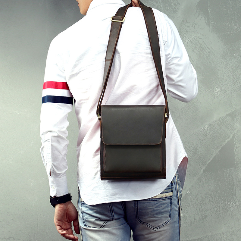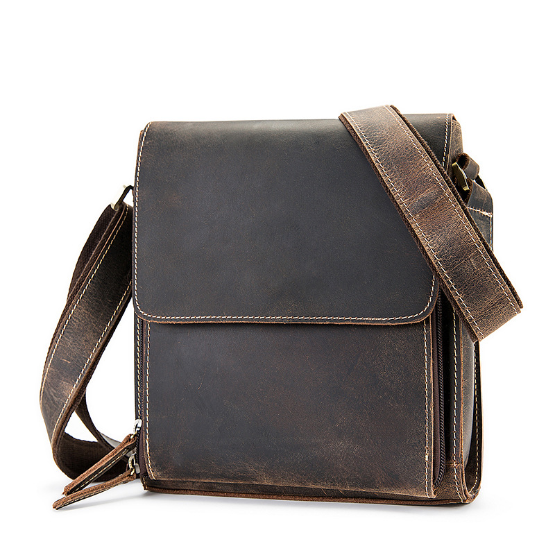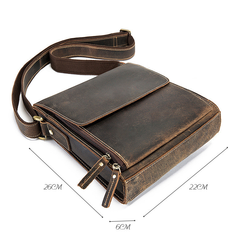 Crazy Horse Leather Men's One Shoulder Diagonal Cross Retro Diagonal Cross Bag