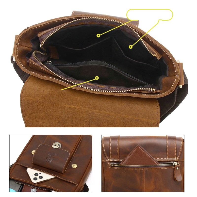 Internal structure of the bag: zippered hidden bag, mobile phone bag, sandwich zipper bag