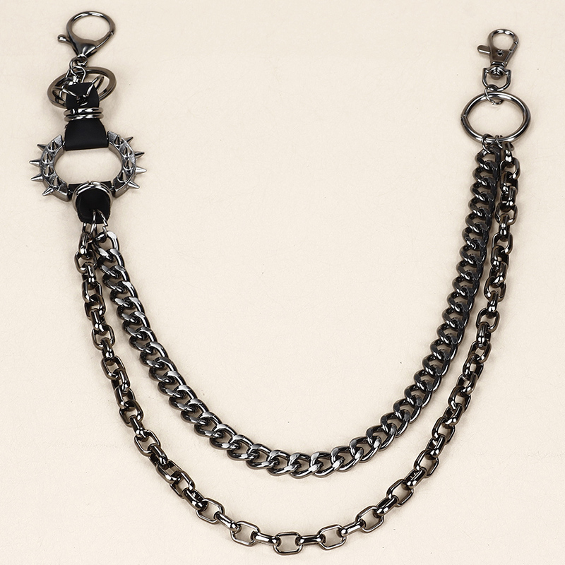 roduct information:Crazy hyperbole spiked pants chain retro cool metal punk rock hip-hop waist chain wallet chain jeans