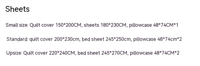 Size specification: 1.2m bed sheet three-piece set, 1.5m bed sheet four-piece set, 1.8m bed sheet four-piece set
