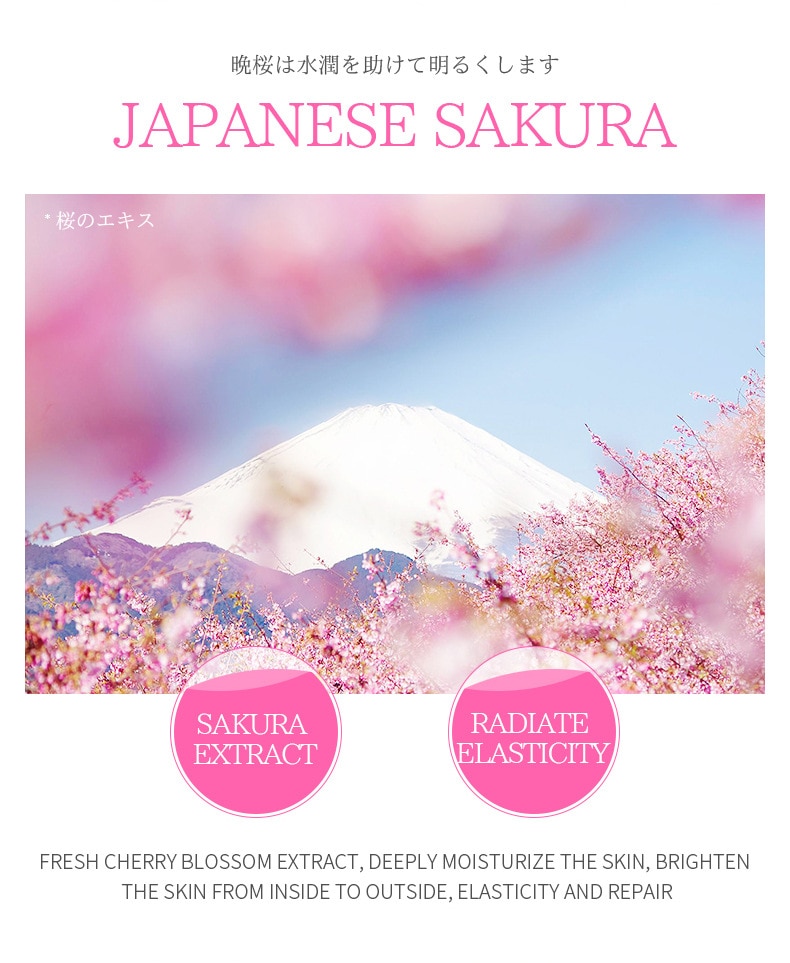 SAKURA EXTRACT RADIATE EL ASIICTIY FRESHCHERRY BLOSSOM EXTRACT, DEEPLY MOISTURIZE THE SKIN, BRIGHTEN THE SKIN FROM INSIDE T0 OUTSIDE, ELASTICITY AND REPAIR