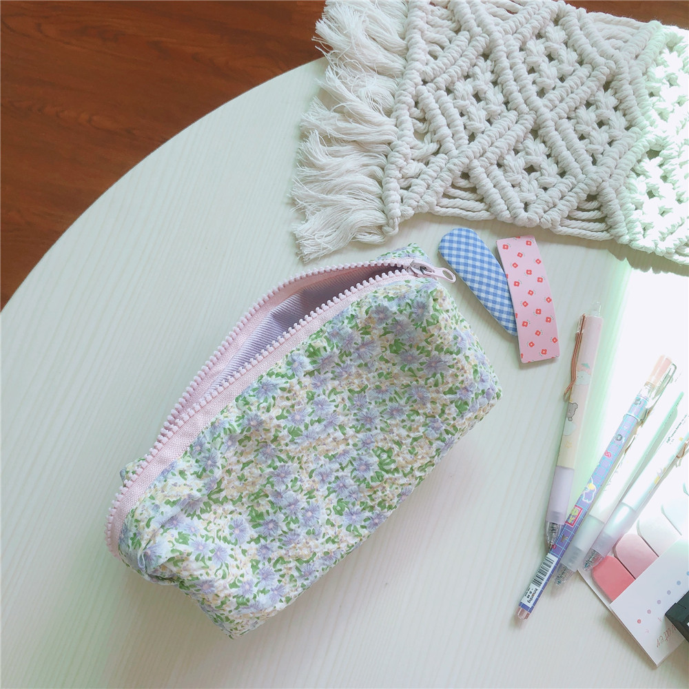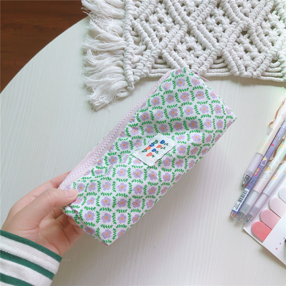 Fabric: Floral cotton outside+12 amp twill light purple canvas inside with color matching light purple zipper at the top of the lining