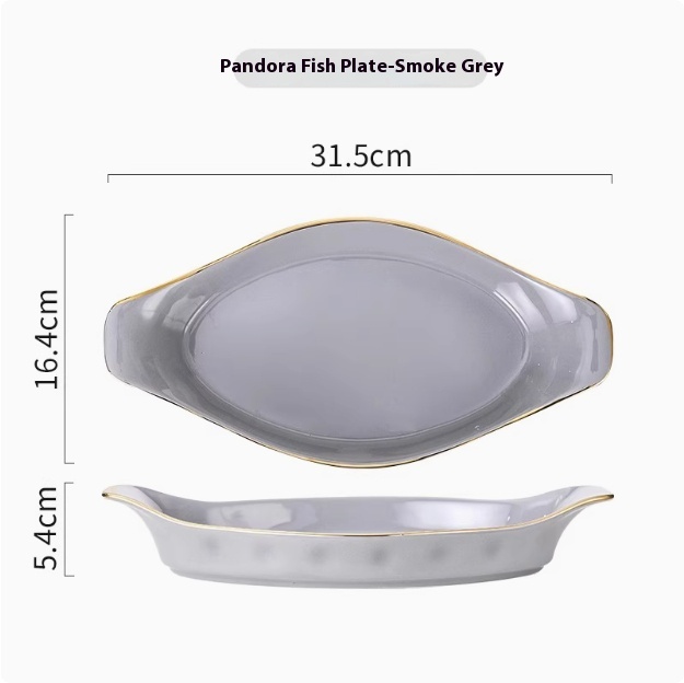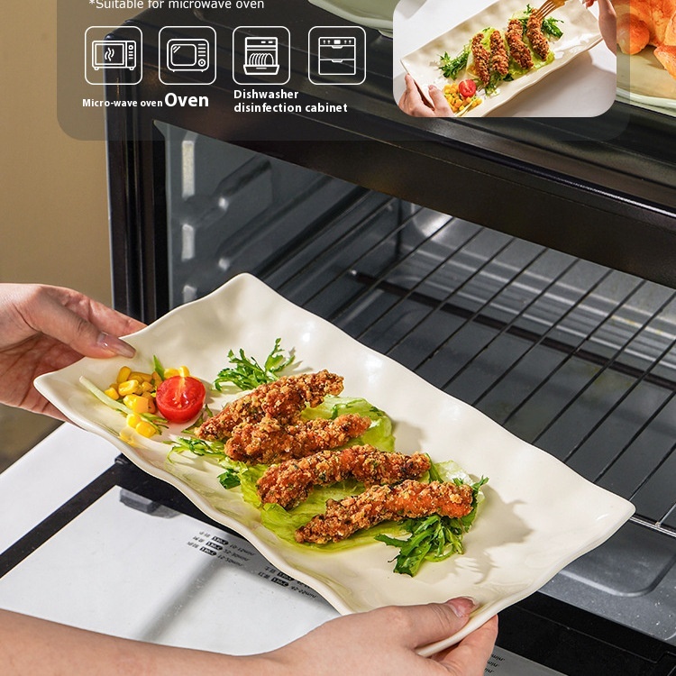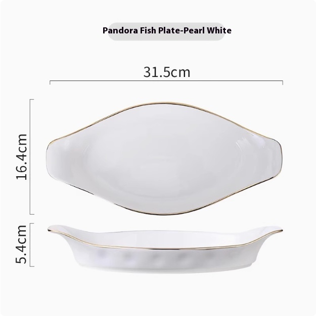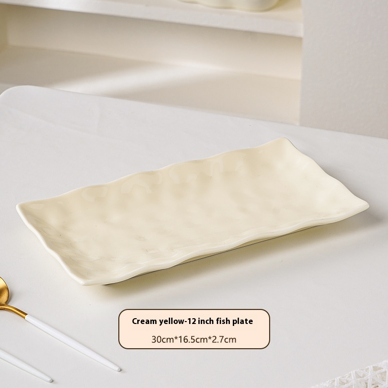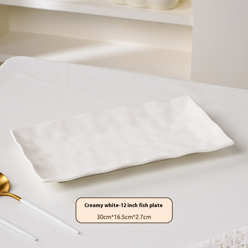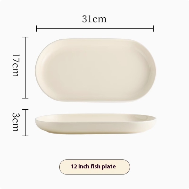 Cream Style Household Steamed Fish Long Platter Porcelain Dinner Plate