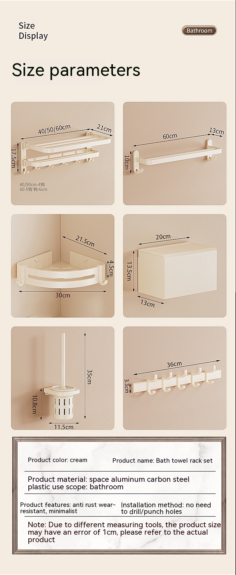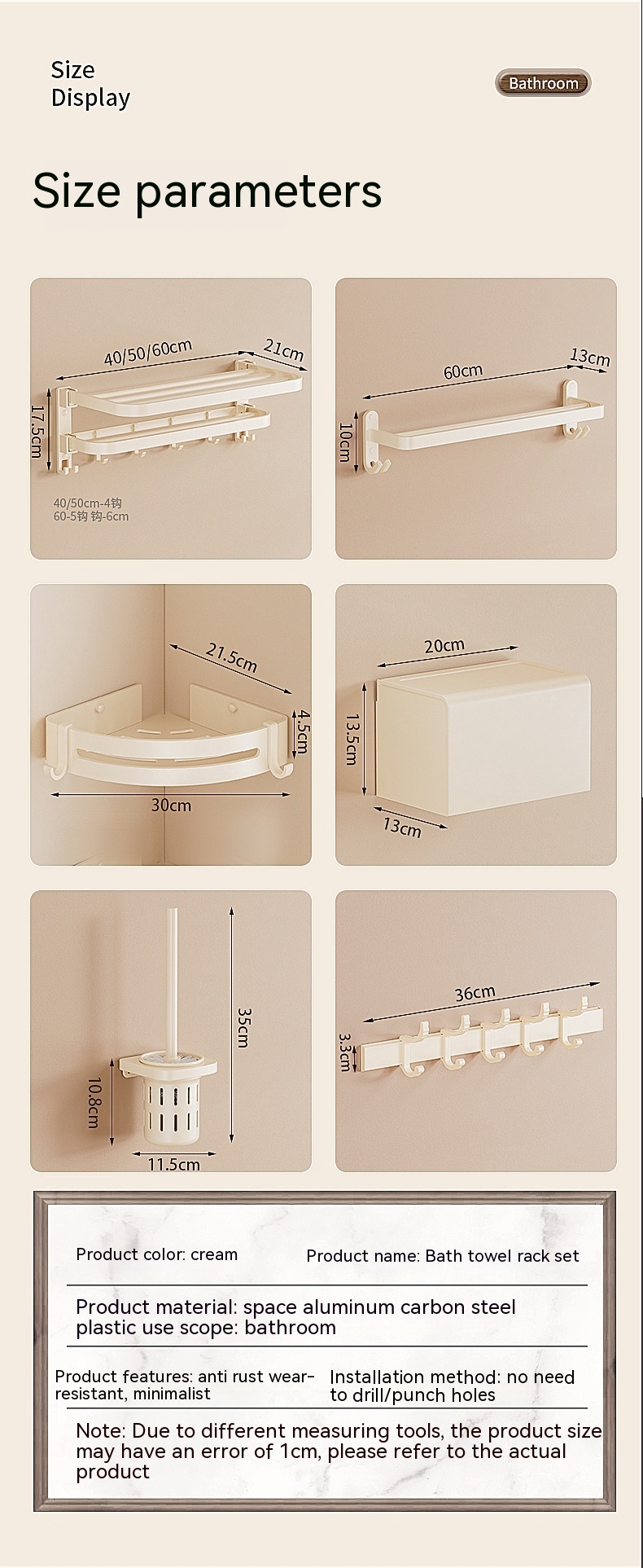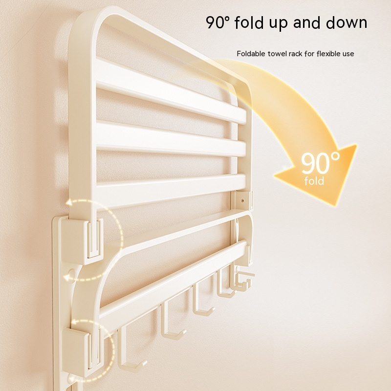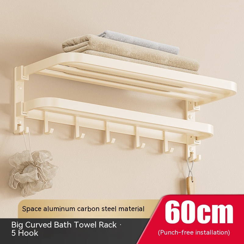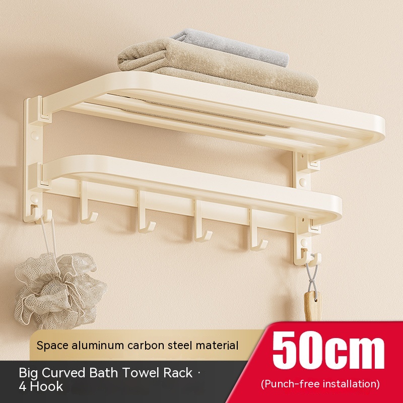 Size: cream color-50cm double folding with hook bath towel rack (dual use), cream color-60cm double folding with hook bath towel rack (dual use)