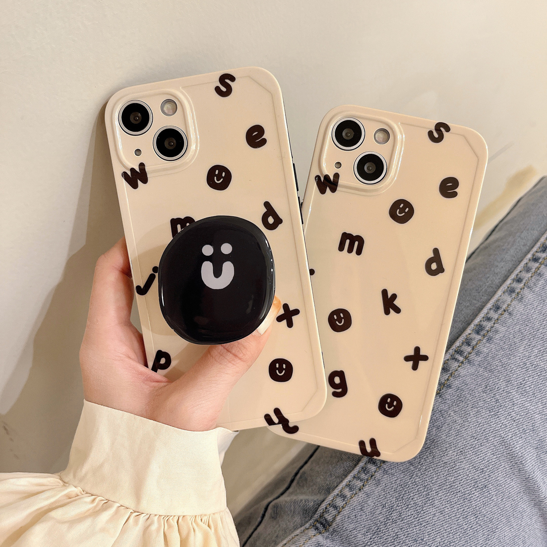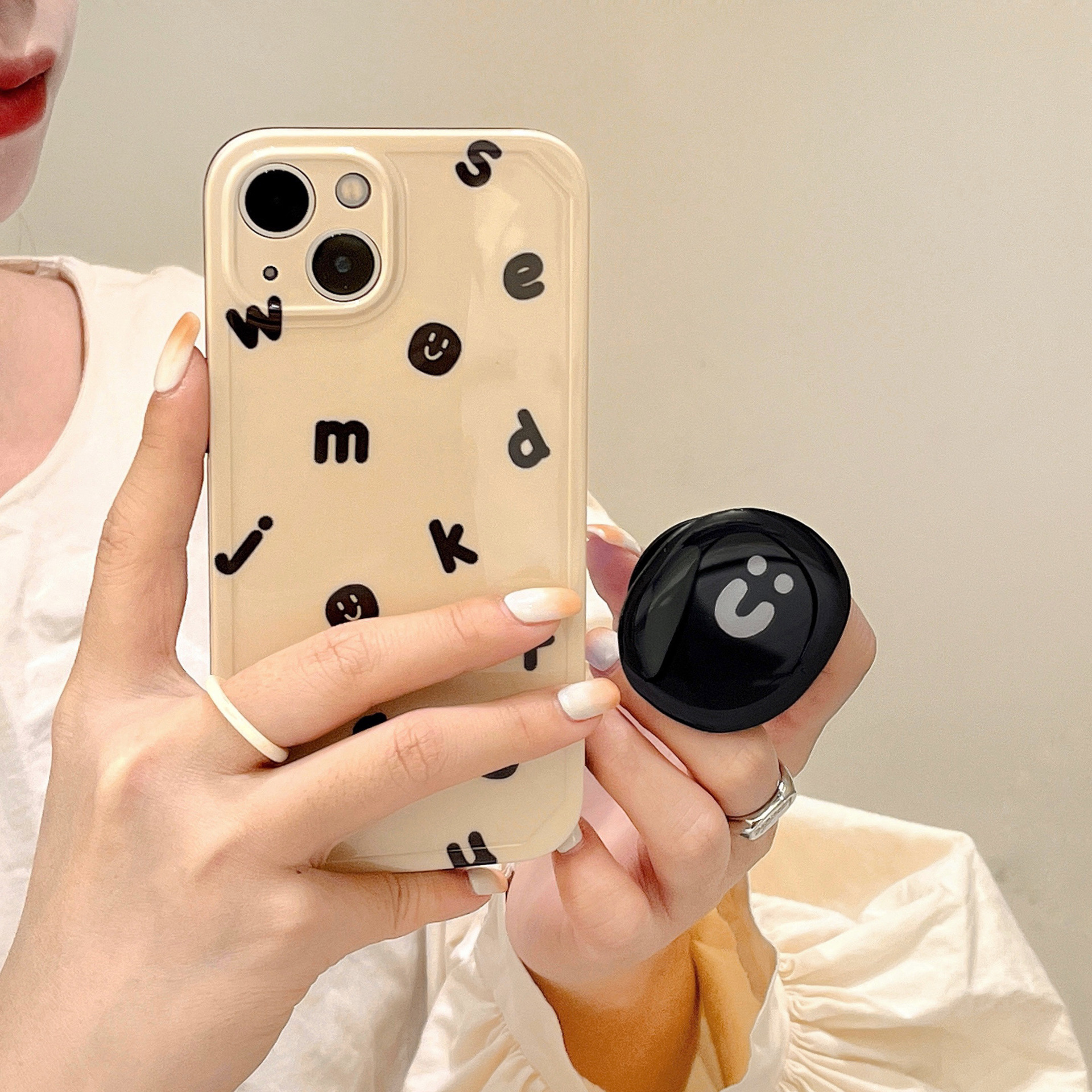 Color : Creamy Alphabet Smiley + Bracket - Straight Edge Photo Frame
