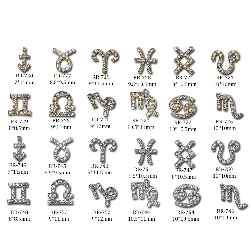 Specifications: One set of bright silver letter constellations, one set of gold letter constellations, one set of silver symbol letters, one set of gold symbol constellations, RR-719, RR-720, RR-721, RR-722, RR-723, RR-724, RR-725, RR-726, RR-727, RR-728, RR-729, RR-730, RR-743, RR-744, RR-745, RR-746, RR-747, RR-748, RR-749, RR-750, RR-751, RR-752, RR-753, RR-754