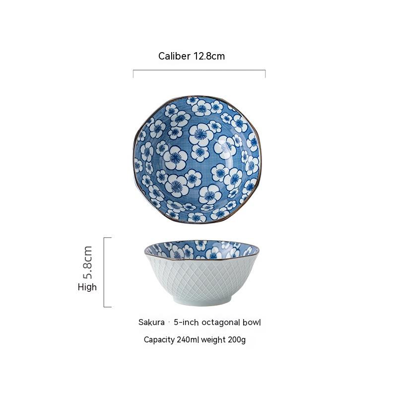 Color: 5-inch octagonal bowl Clover * 1 piece, 5-inch octagonal bowl Wind Flower Snow Moon * 1 piece