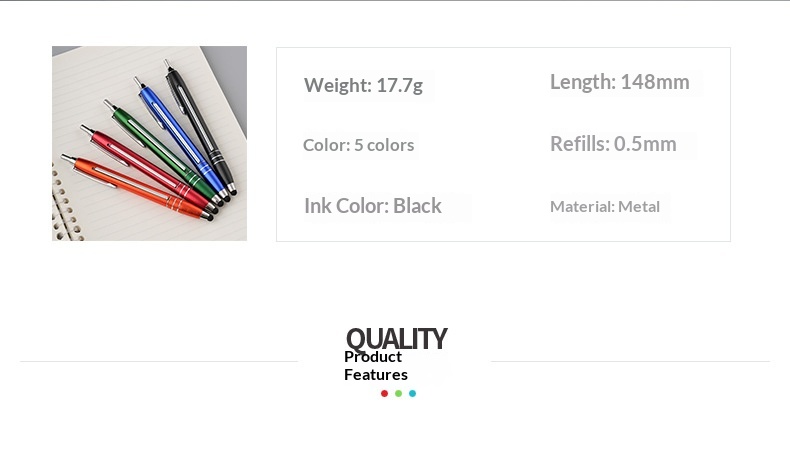 Product information:Colors: Black, red, blue, green, orange Pen body material: Metal. Style: Modern minimalist.