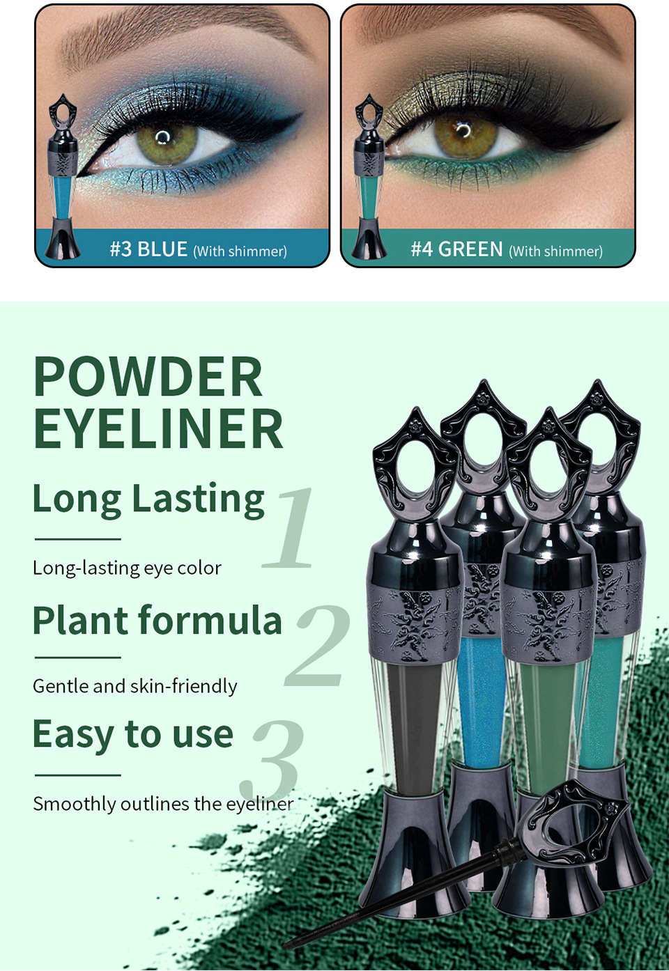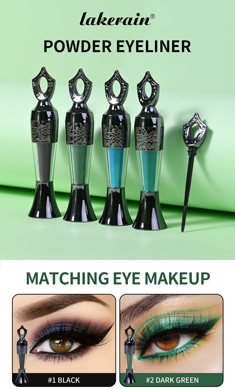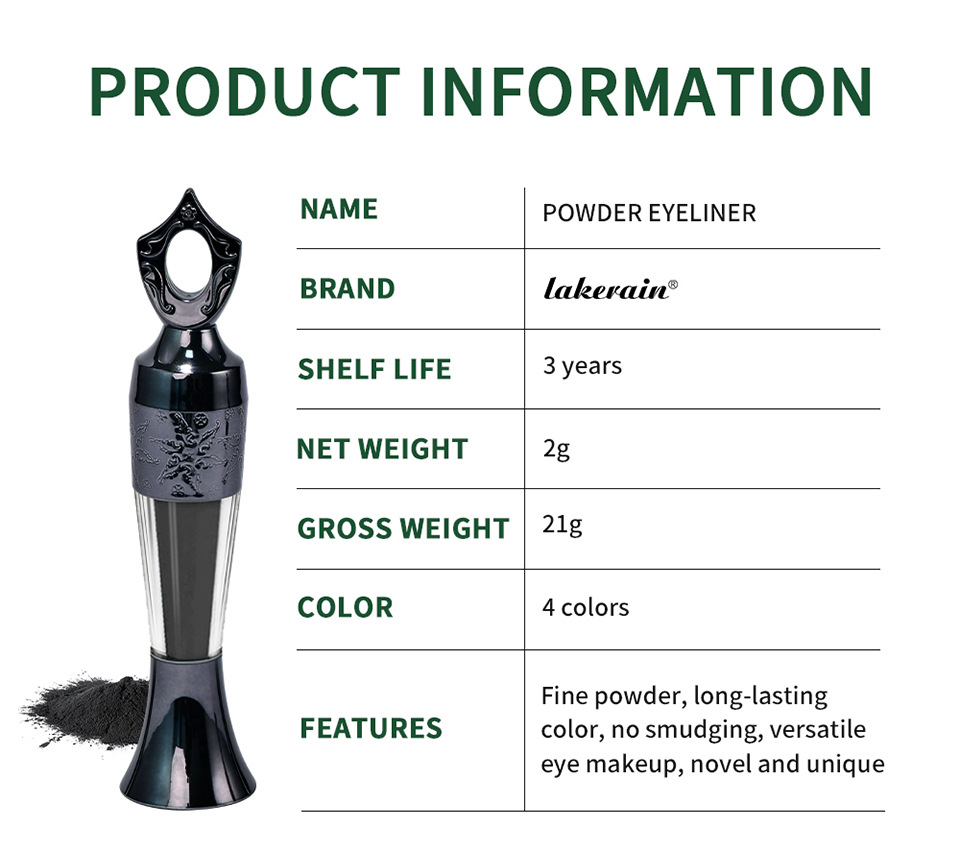 Color classification: lakerain sande powder eyeliner #1 Black (foreign edition),lakerain sande powder eyeliner #2 dark green (foreign edition),lakerain sande powder eyeliner #3 Blue (foreign edition),lakerain Sayid pink eyeliner #4 Green (Foreign version)