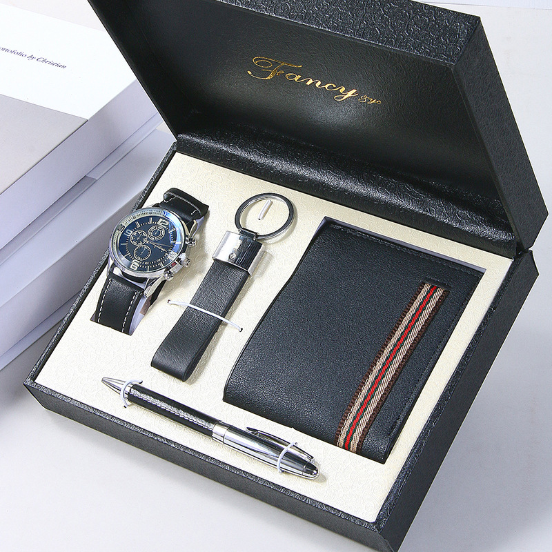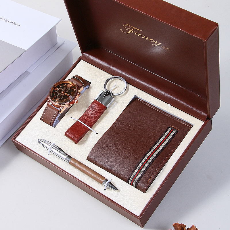 Color: 5 PCs Brown (watch wallet keychain pen Wood gift box),5 pcs Black (watch wallet keychain pen Wood gift box)