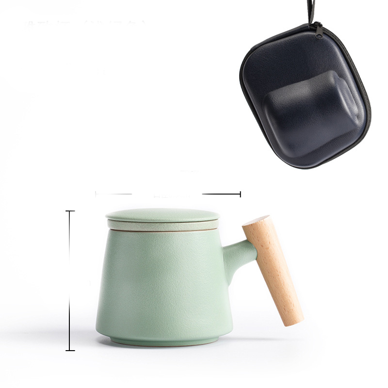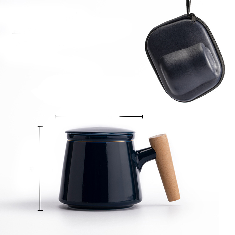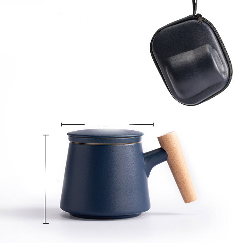Style K: Elegant cup with wooden handle + tea caddy + travel bag [ji blue],