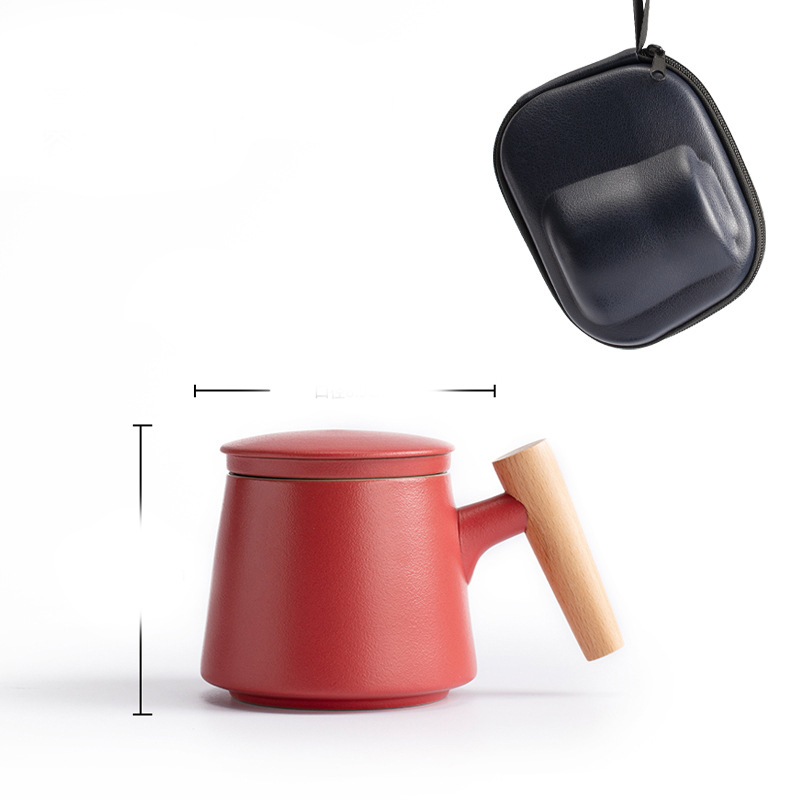 Style L: Elegant Cup with Wooden Handle + Tea Caddy + Travel Bag [Wine Red],
