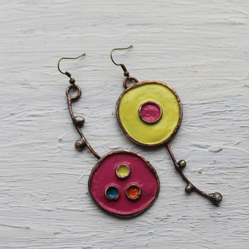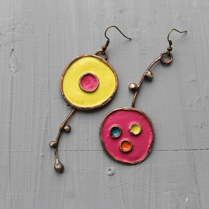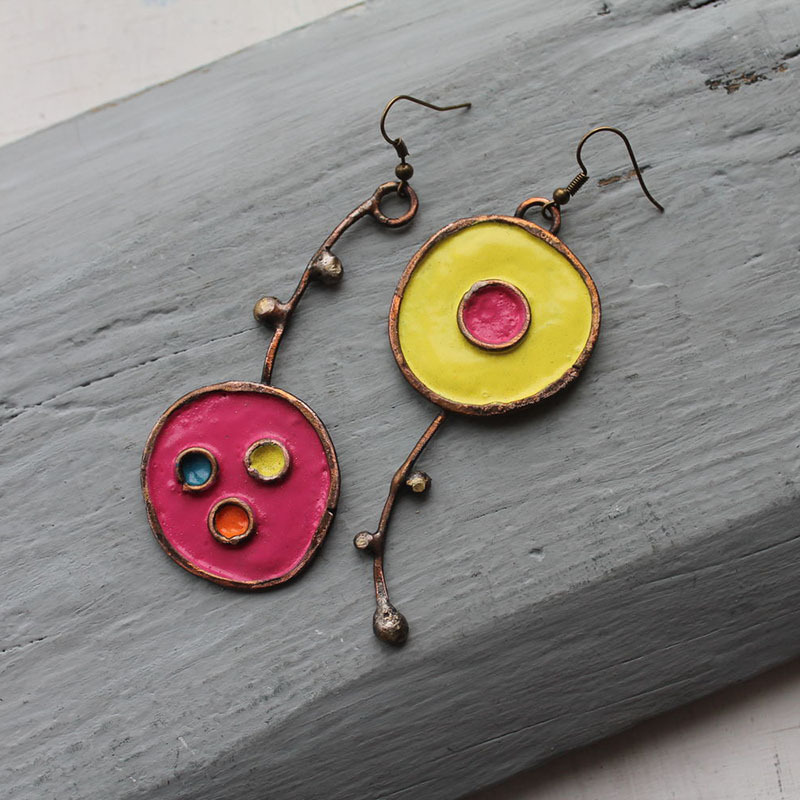 Creative Best-Selling Asymmetric Graffiti Antique Red Copper Earrings