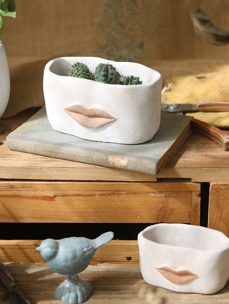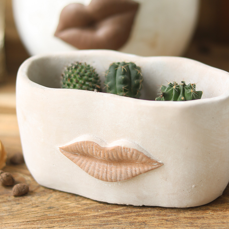 Creative Big Lips Cement Flower Pot Abstract Art
