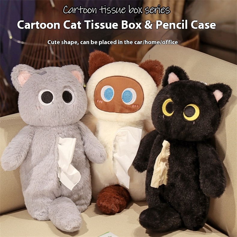 Color: white cat tissue box, gray cat tissue box, yellow cat tissue box, black cat tissue box, White Cat pencil box, gray cat pencil box, yellow cat pencil box, Black Cat pencil box