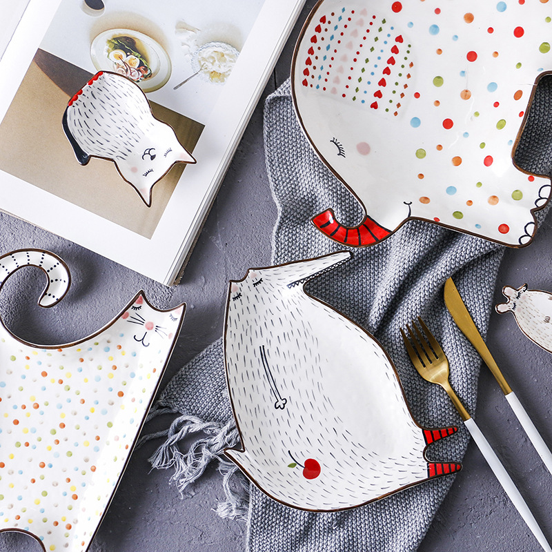 Product Category Bowl, Plate, Plate Set Material porcelain pattern cartoon style creative Shape irregular shape microwave oven available Trade attributes Foreign trade originals Applicable gifts occasions Opening ceremony, employee benefits, awards commemoration, anniversary celebrations, advertising promotions, festivals, weddings, birthdays Surface Craft Underglaze Color TZ-222A30 (rat) dish, TZ-222B42 (cat) dish, TZ-222C50 (cat) bowl, TZ-222D65 (fox) bowl, TZ-222E67 (hedgehog) plate, TZ-222F82 ( Snapper fox) disk, TZ-222G100 (cat) disk, TZ-222H105 (elephant) disk, TZ-222I110 (polar bear) disk, TZ-222J125 (red hat) disk