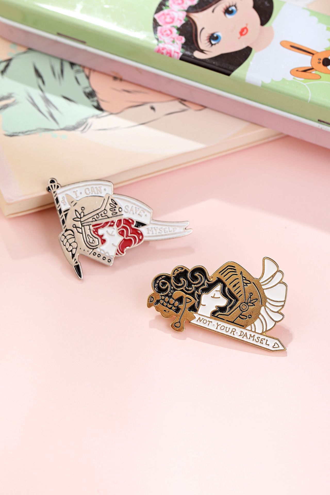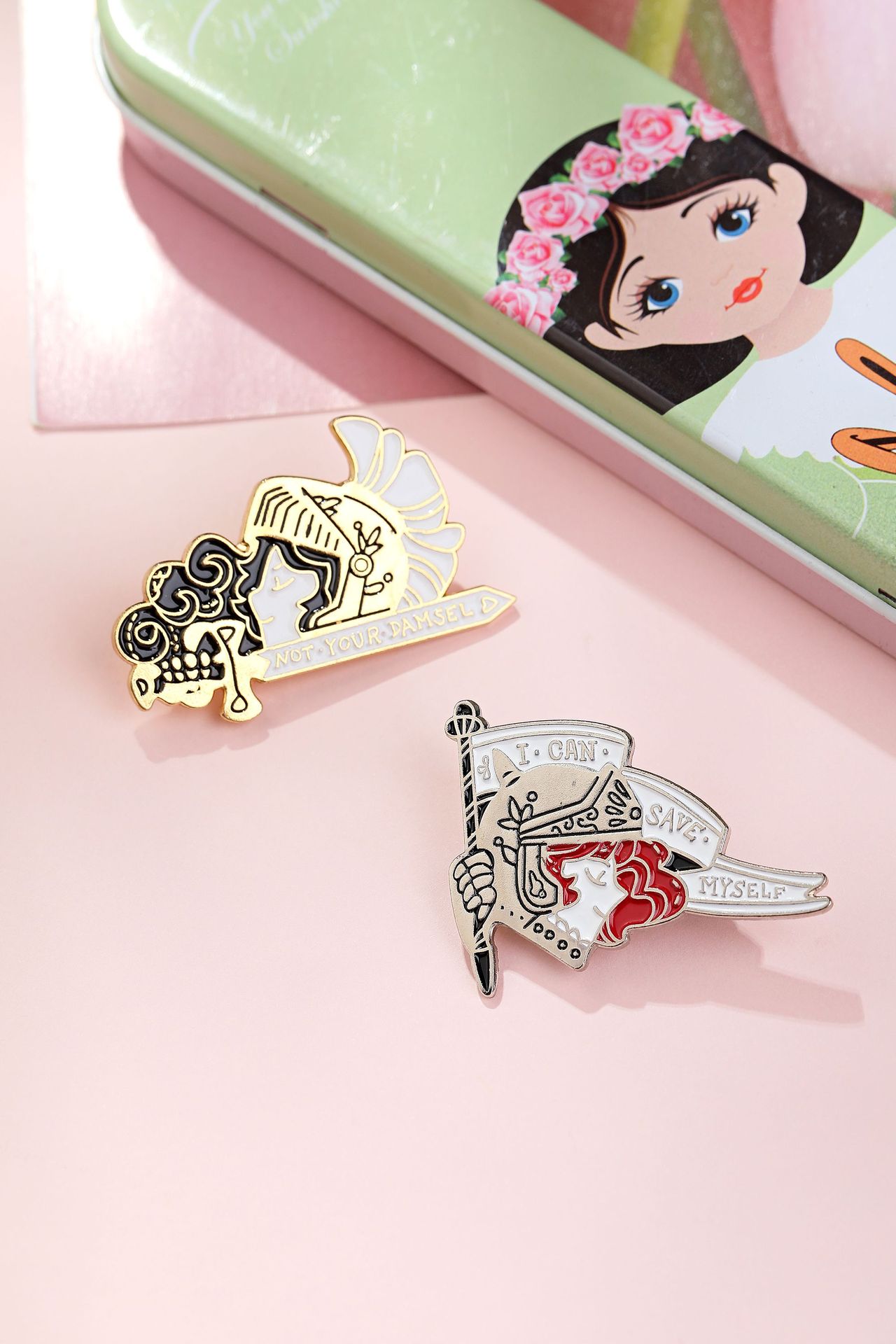 Creative Cartoon Female Knight Helmet Shape Paint Alloy Badge Accessories
