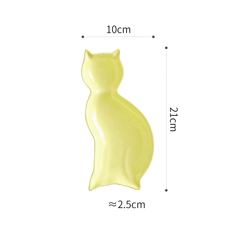 Color: white cat plate, pink cat plate, blue cat plate, black cat plate, yellow cat plate, brown cat plate, green cat plate