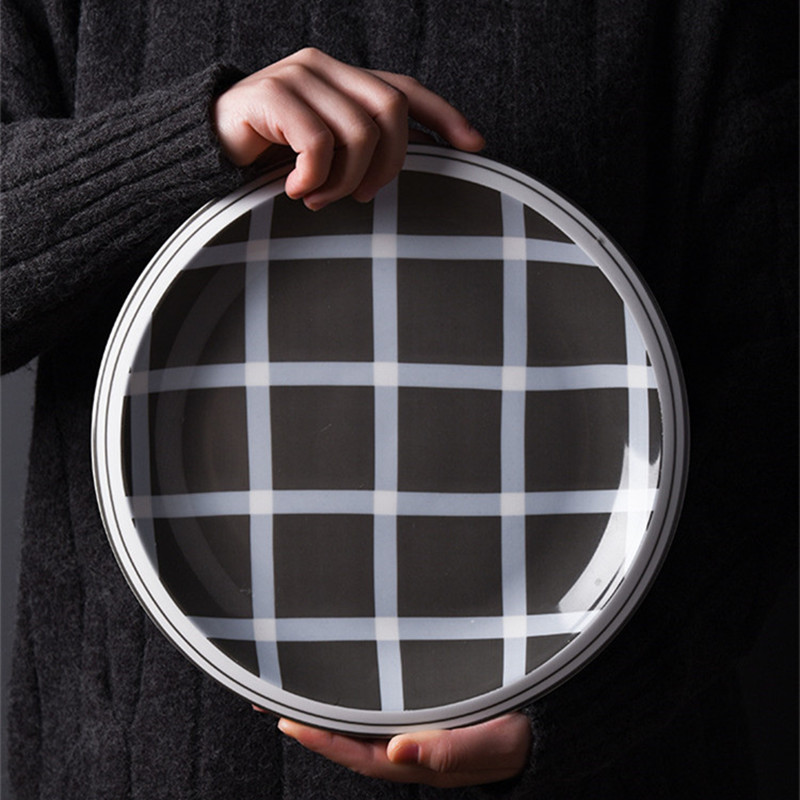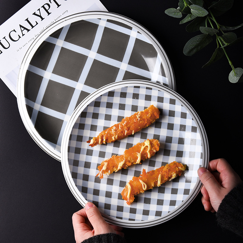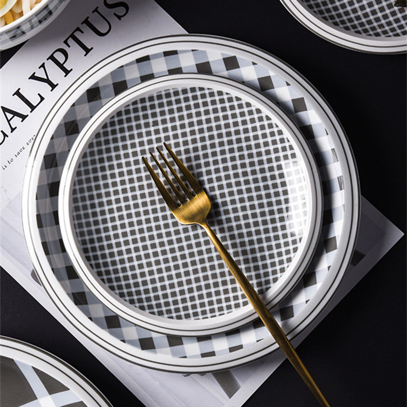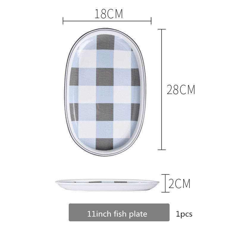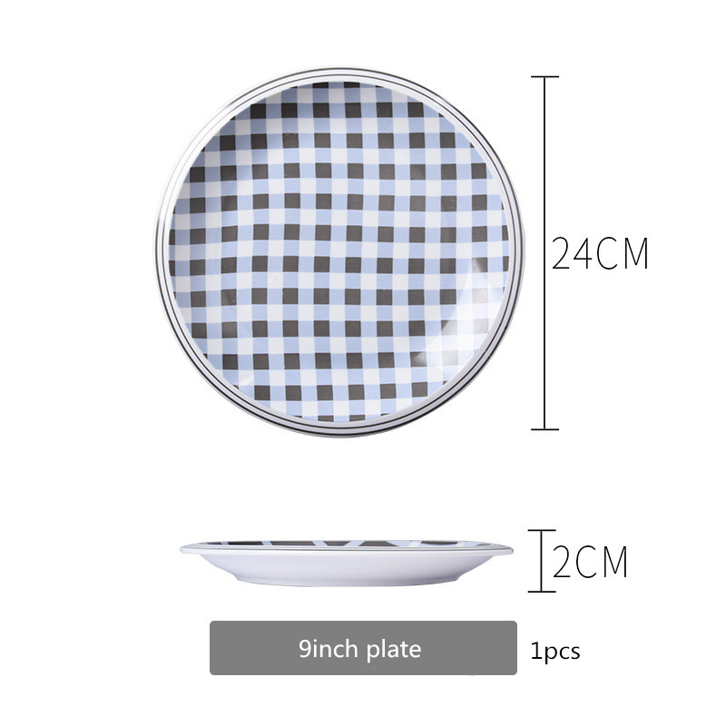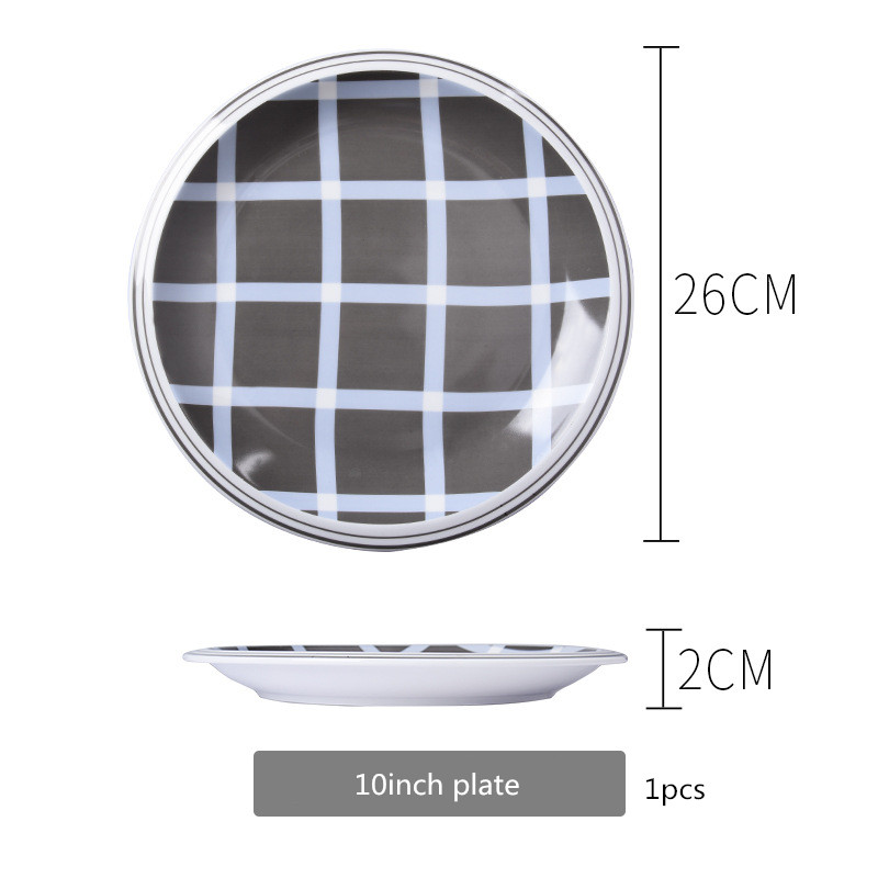 Colour: 5 inch-gray grid rice bowl gray grid-small dish gray grid-small spoon 28CM- gray grid oval plate 6 inches- gray grid noodle bowl 7 inches- gray grid soup bowl 10 inches- gray grid disc gray grid-large Soup spoon 7 inches-gray grid disc 9 inches-gray grid disc
