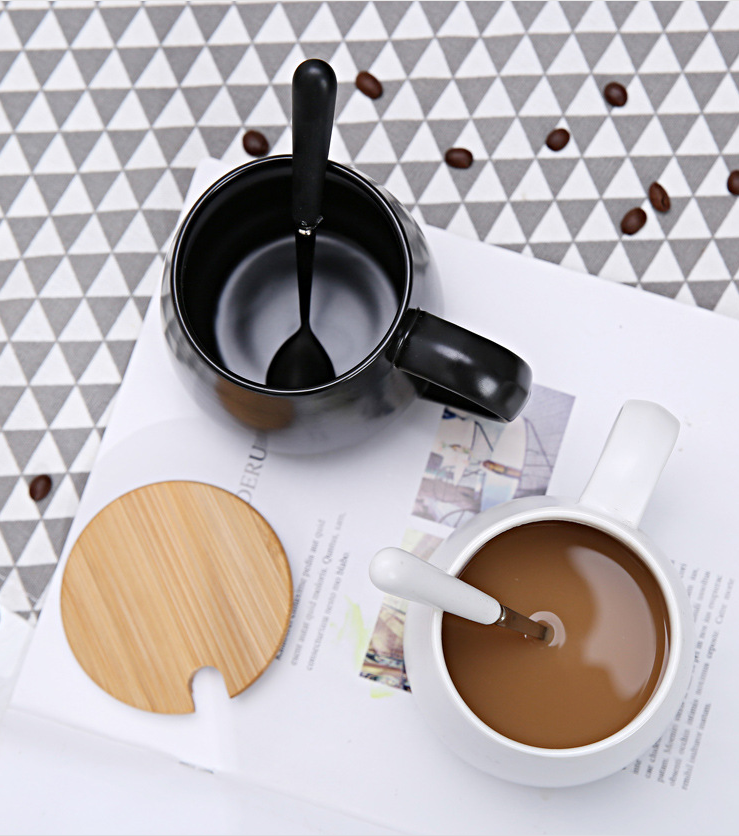 Color: black single cup, white single cup, black cup + porcelain lid + spoon, white cup + porcelain lid + spoon