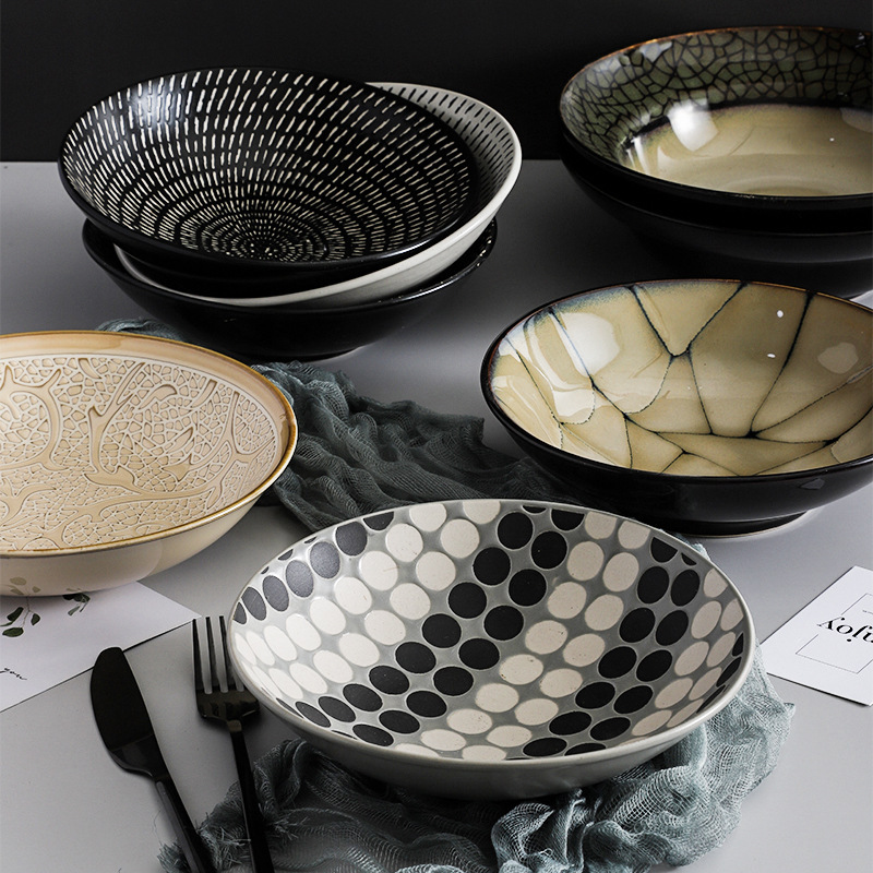 Creative ceramic dish dish home deep dish wholesale Japanese hand-painted ramen bowl salad straw hat bowl hotel tableware