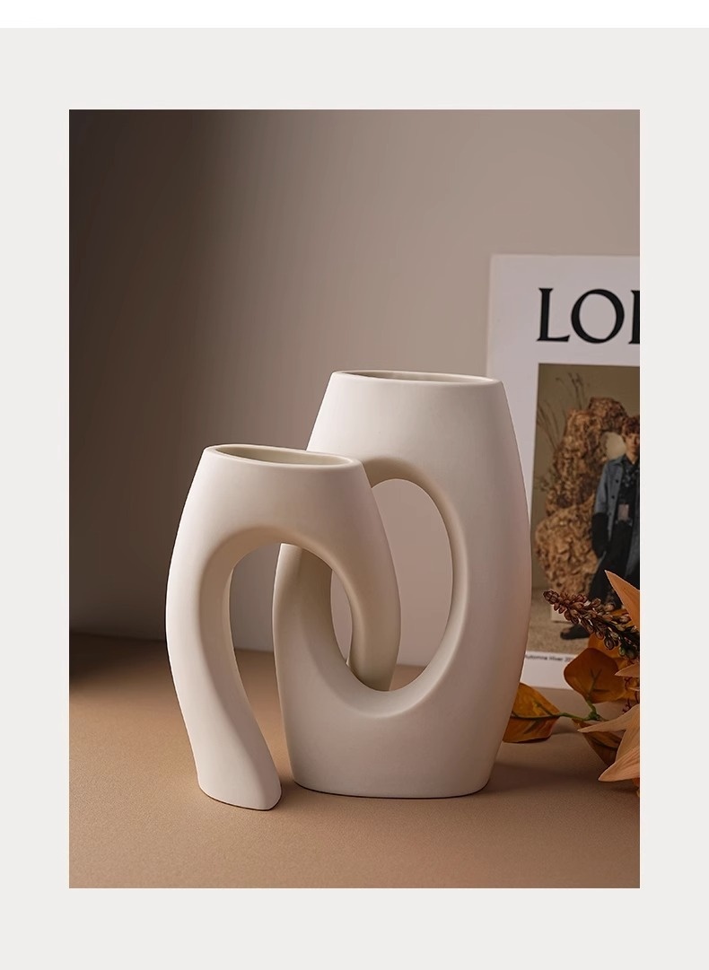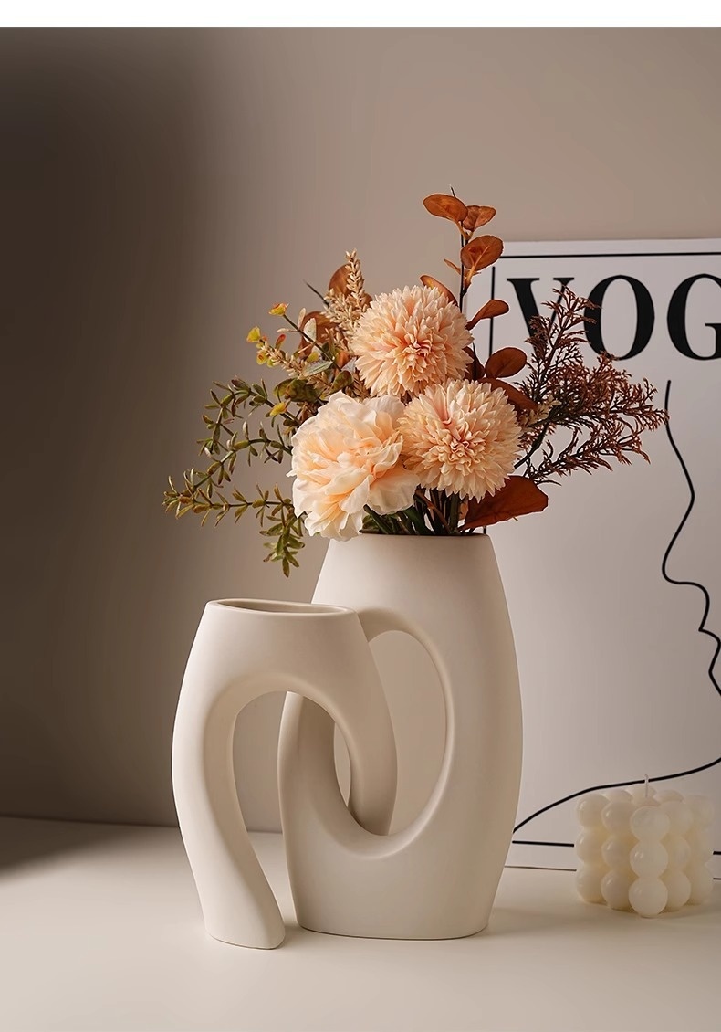 Color: shaped cross vase, shaped cross vase dandelion Peony Floral set, shaped cross vase handwriting autumn floral set, ins donut vase, shaped cross vase [Silver White]]