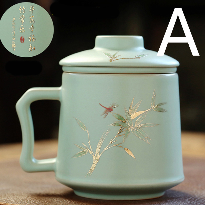 Creative Ceramic Water Cup With Lid To Filter Large Capacity