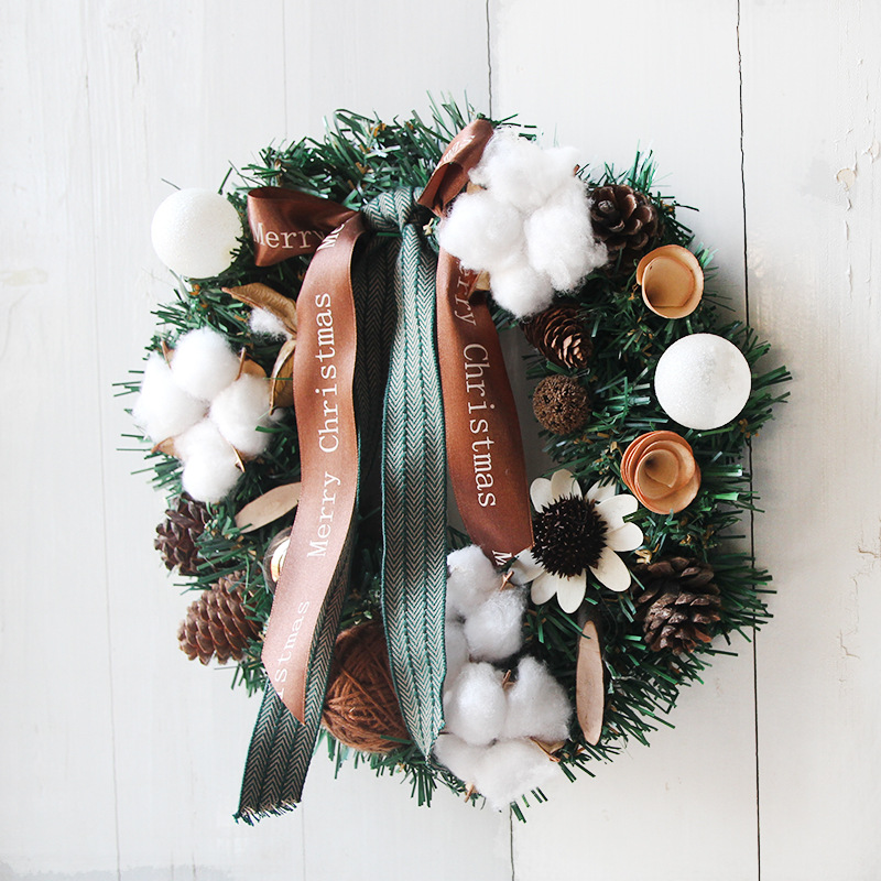 The Christmas wreath is decorated with artificial pine cones berries and maple leaves, which can brighten up your holiday season.