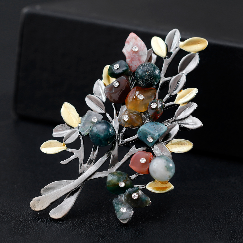 Creative Colored Stone Christmas Tree Brooch