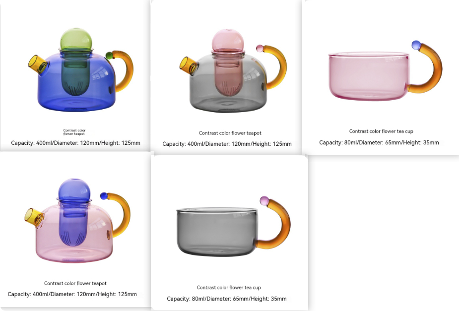 Color: Blue Pink Single Teapot400ml, Green Blue Single Teapot400ml, Pink Gray Single Teapot400ml, Powder Cup80ml, Blue Cup80ml, Gray Cup80ml