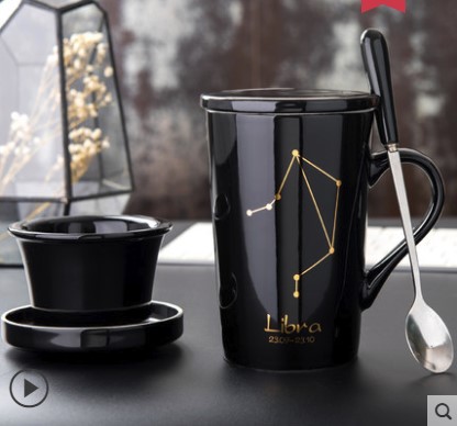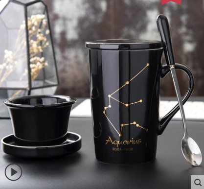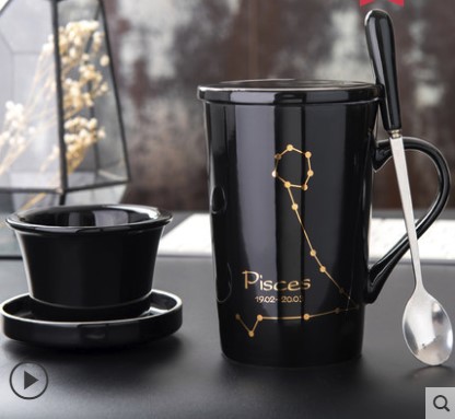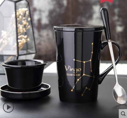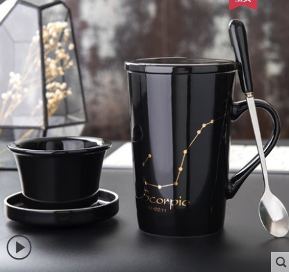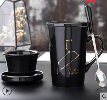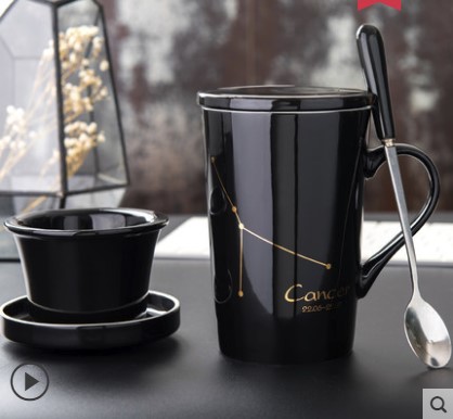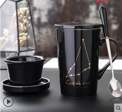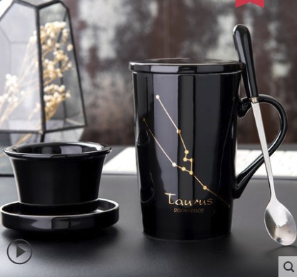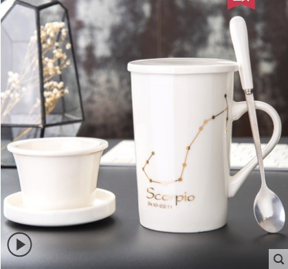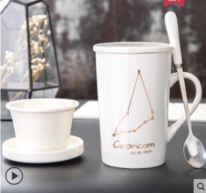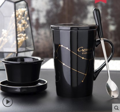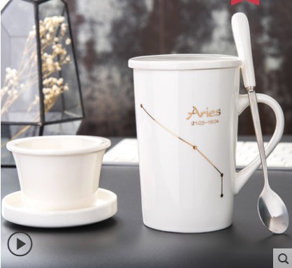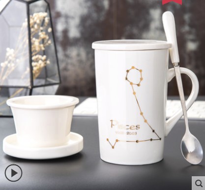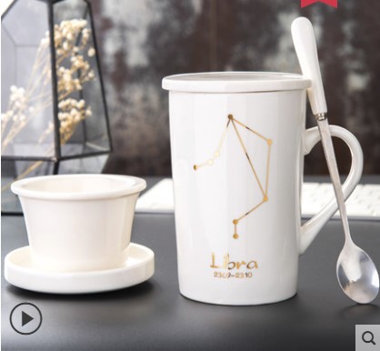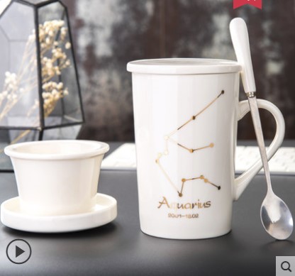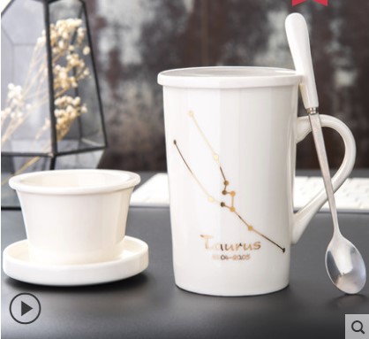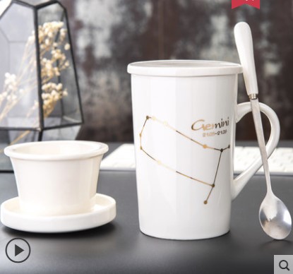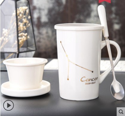 Creative cup ceramic with lid spoon tea cup filter coffee cup simple couple cup office mug