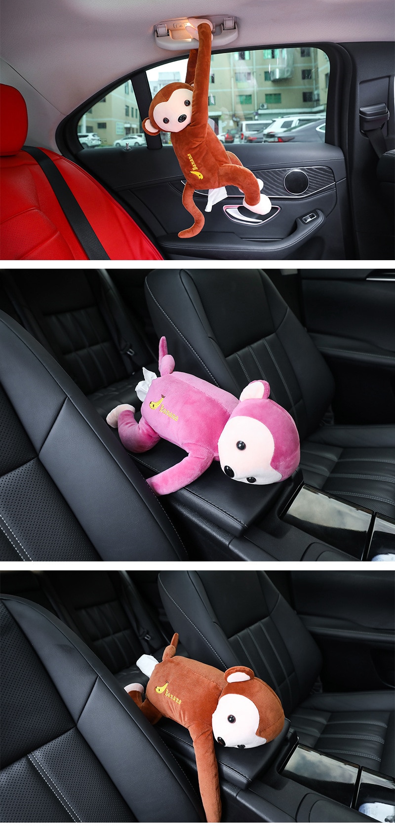 Size: Creative Pippi Monkey Tissue Box Car Supplies Paper Towel Hanging Car Seat Back Pumping Box Cartoon Cute