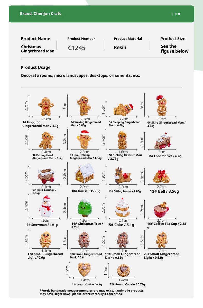 Color: please hold the pie male, wave the pie male, sleep the pie male, wear the pie male, touch one's head the pie male, hang the Starpay the male, sit the pie male, locomotive, train carriage, house, lying deer, Bell, snowman, Christmas tree, cake, coffee cup and tea cup, small ginger cake light, small ginger cake deep, love cake, round cake