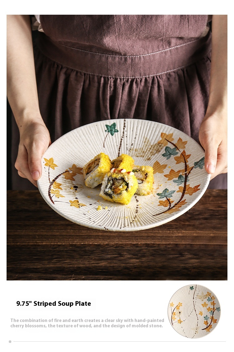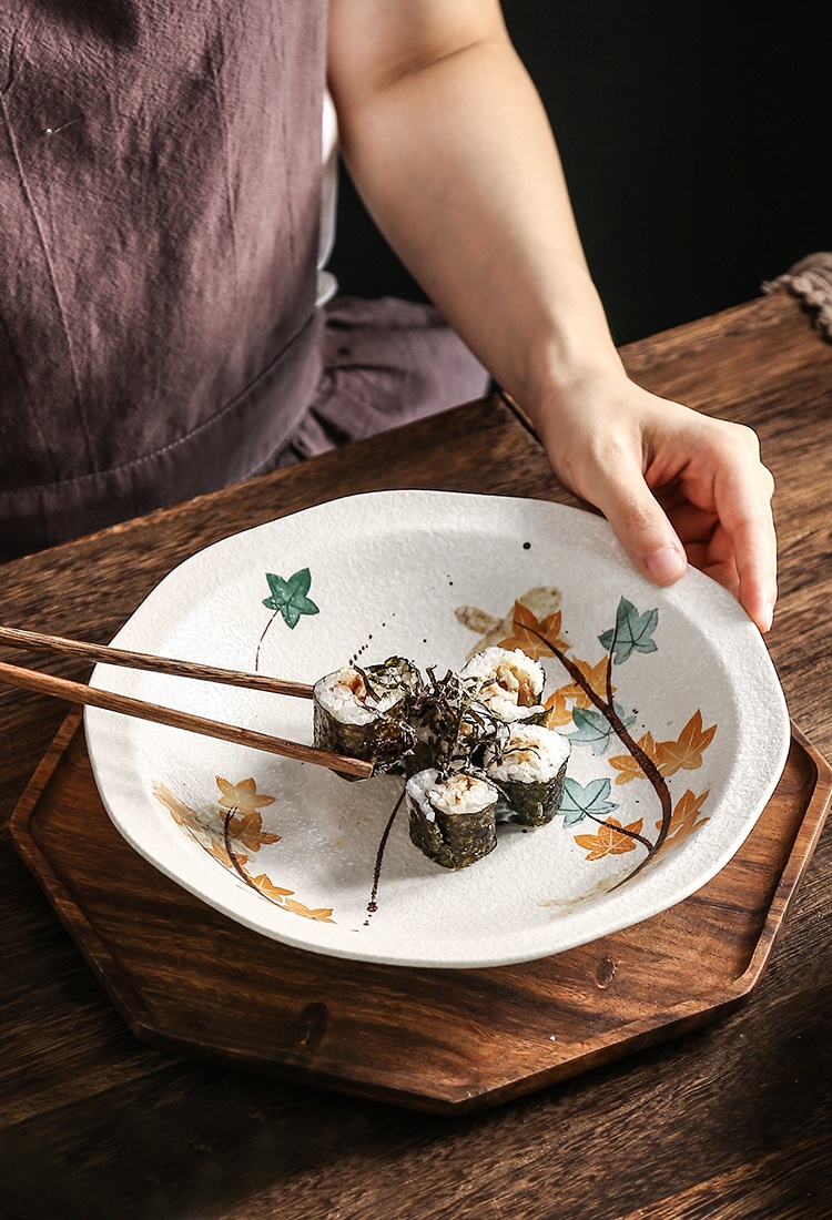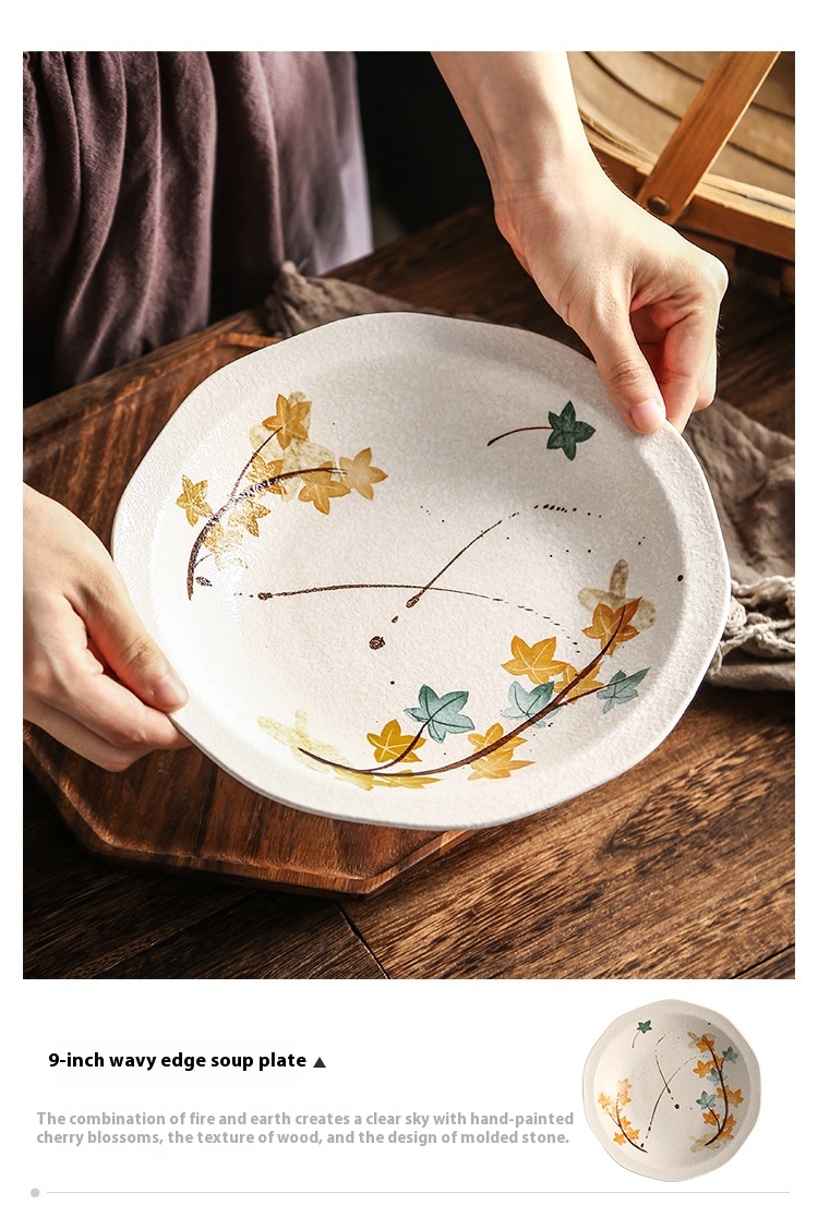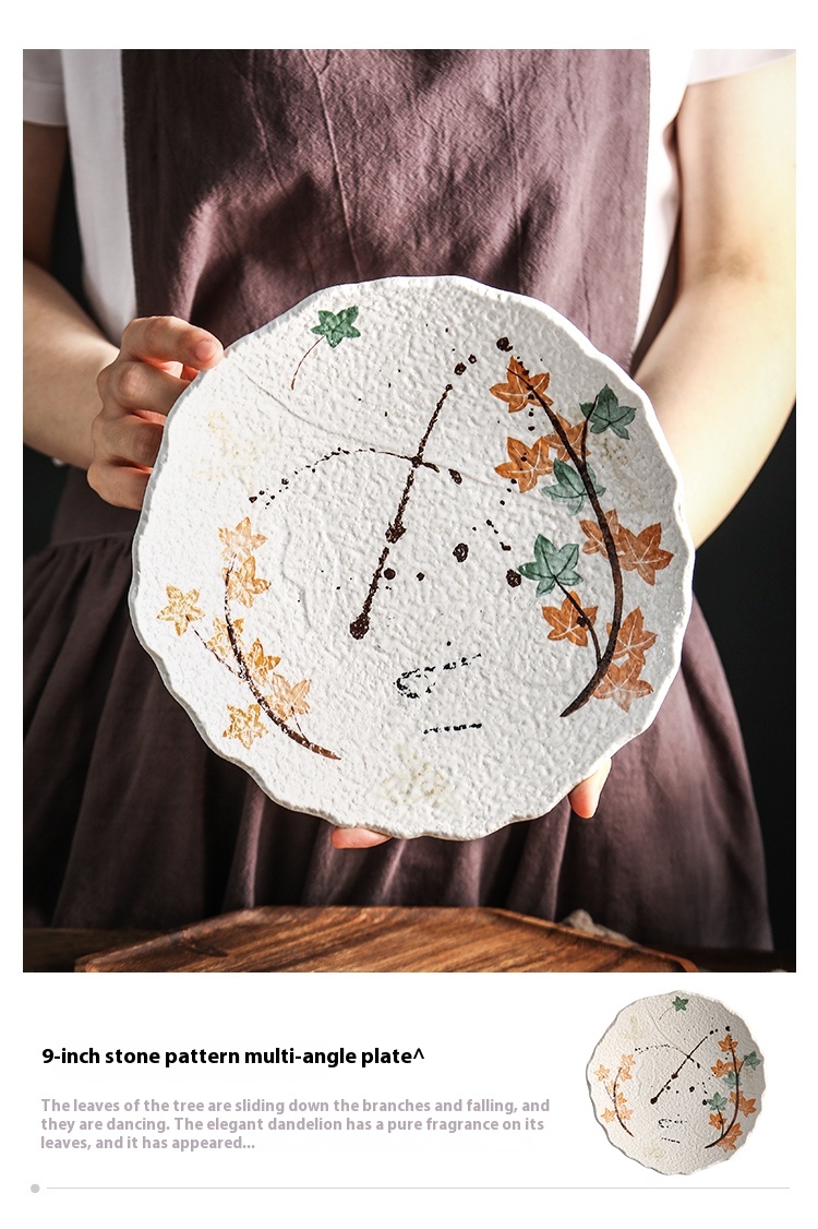 Color: 8.5-inch stone pattern lace plate-Maple Leaf, 9-inch stone pattern multi-angle plate-Maple Leaf, 9-inch wave soup plate-Maple Leaf