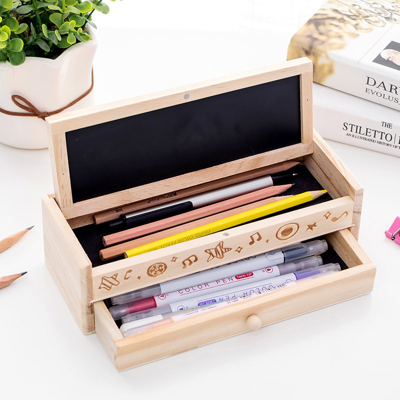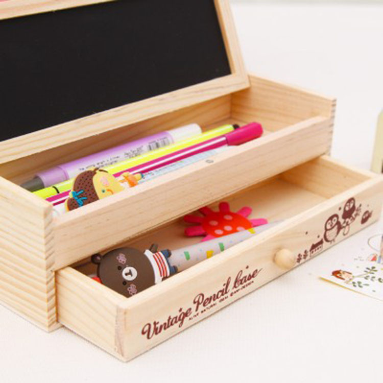 Creative Exquisite Cute Storage Box Multifunctional Wooden DIY Small Blackboard Drawer Pencil Case Korea Stationery Box