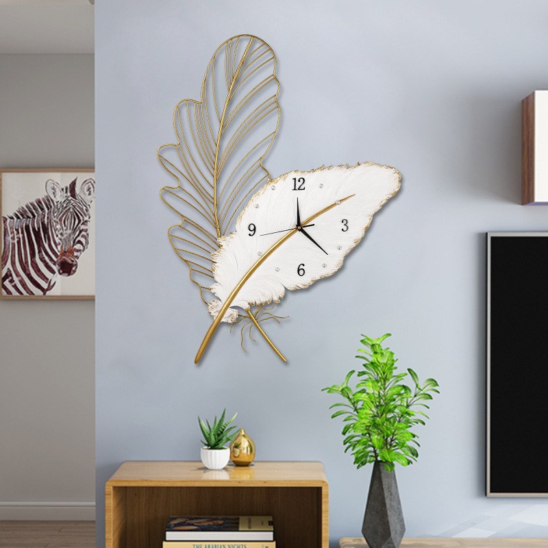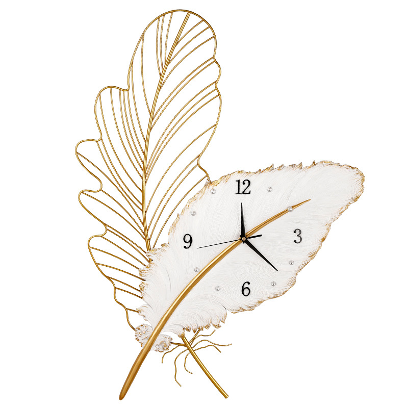 Color: Wrought iron feather wall clock, wrought iron feather wall decoration, 9988 feather wall clock [painted gold], 9988 feather wall clock [foil gold], blue ginkgo leaf wall clock [medium size], blue ginkgo leaf wall clock [large size], carved feathers Wall clock [special price], copper deer head wall clock [special price], 9968 antler clock Nordic color, 9996 leaf deer head clock white