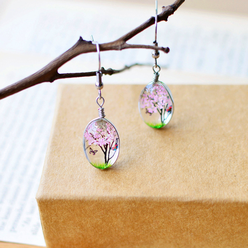 Material: steel hook + glass + dried flower