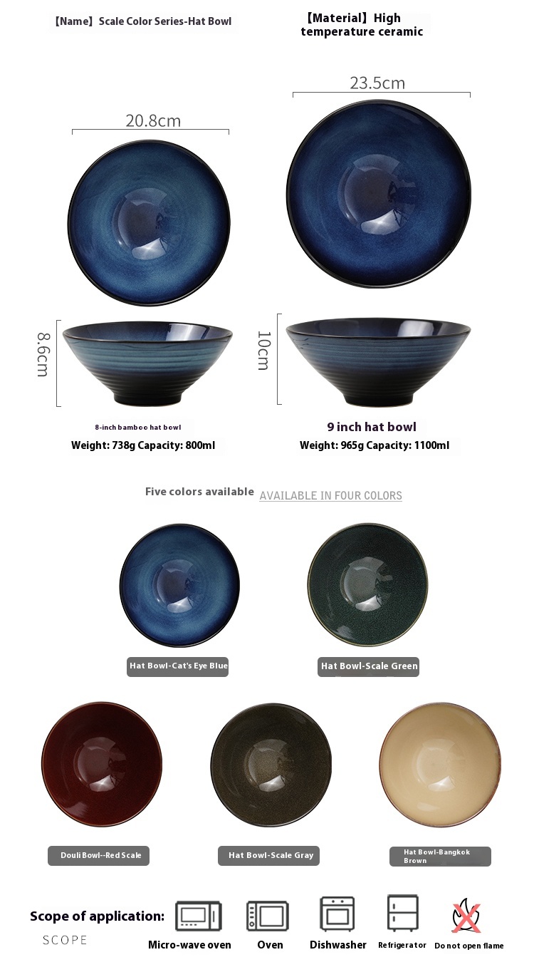 Color: 8-inch rain-hat shaped bowl-scale color red, 8-inch rain-hat shaped bowl-scale color gray, 8-inch rain-hat shaped bowl-scale bright green, 8-inch rain-hat shaped bowl-Bangkok Brown, 8-inch rain-hat shaped bowl-cat eye blue, 9-inch rain-hat shaped bowl-scale color red, 9-inch rain-hat shaped bowl-scale color gray, 9-inch rain-hat shaped bowl-scale Bright Green, 9-inch rain-hat shaped bowl-Bangkok Brown, 9-inch rain-hat shaped bowl-Cat's Eye Blue