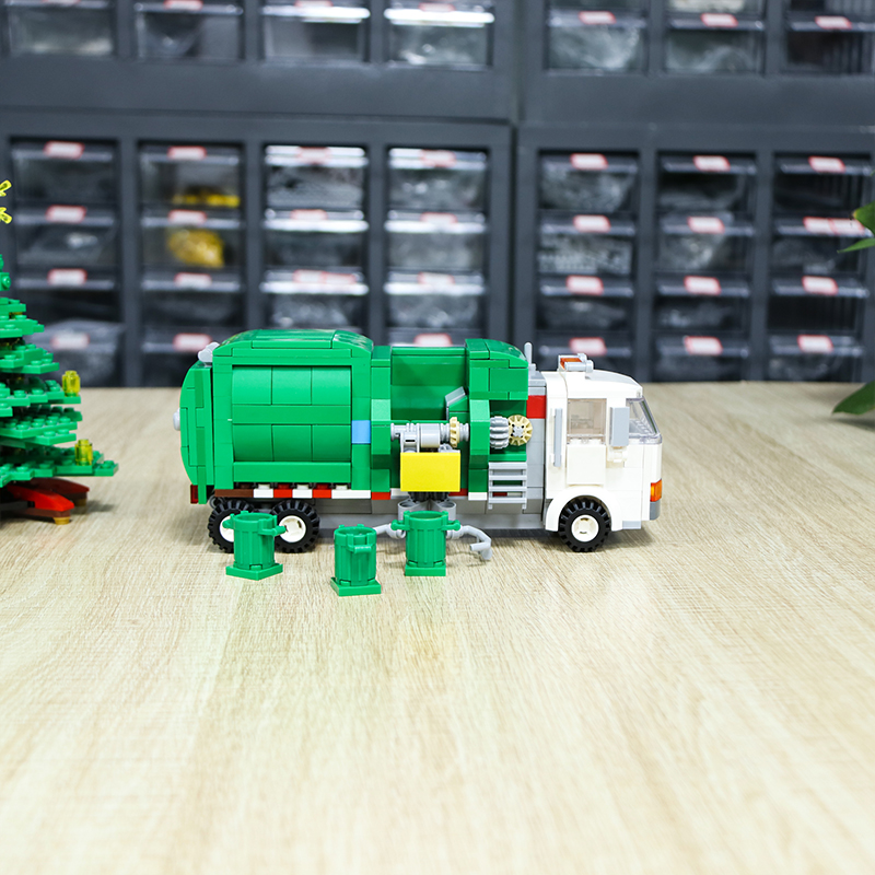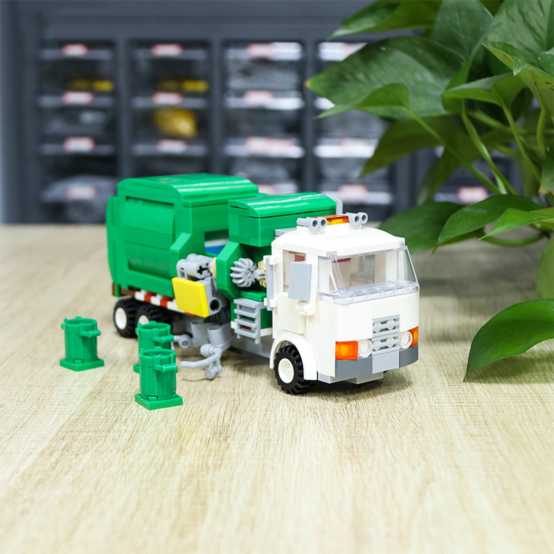 Color classification: green and white sanitation vehicle, white sanitation vehicle
