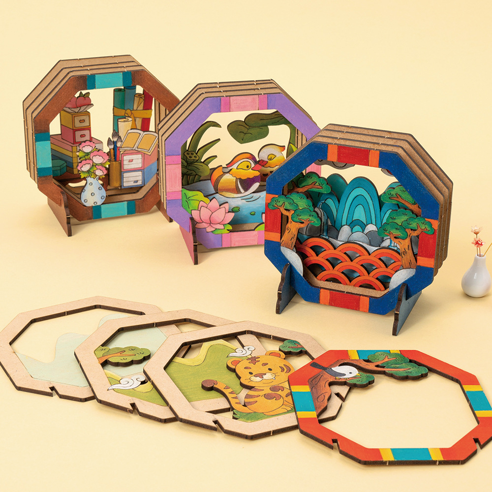 Color: Tiger bird picture (not including brush), sun and moon five peak diagram (not including brush), book frame diagram (not including brush), mandarin duck diagram (not including brush)