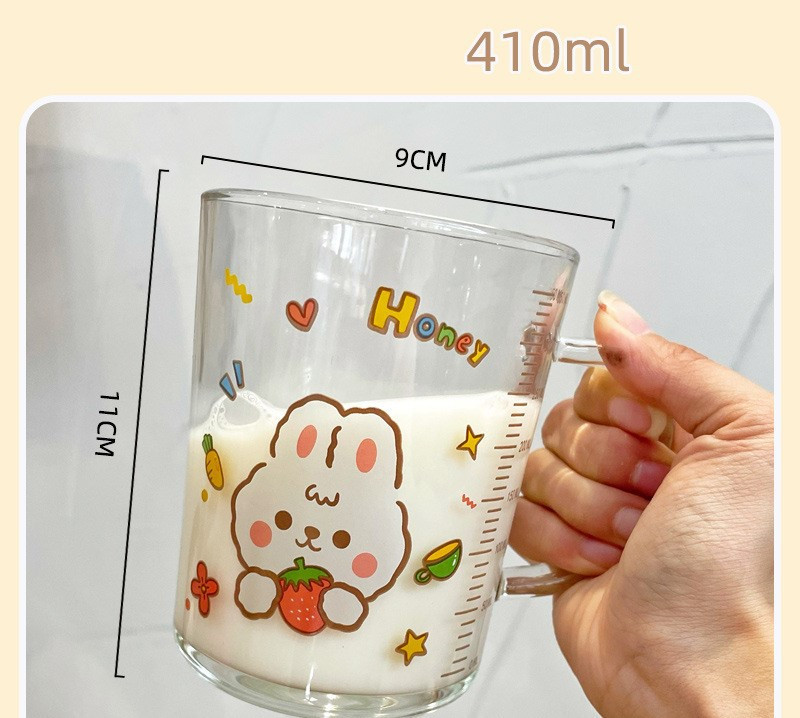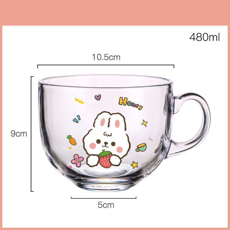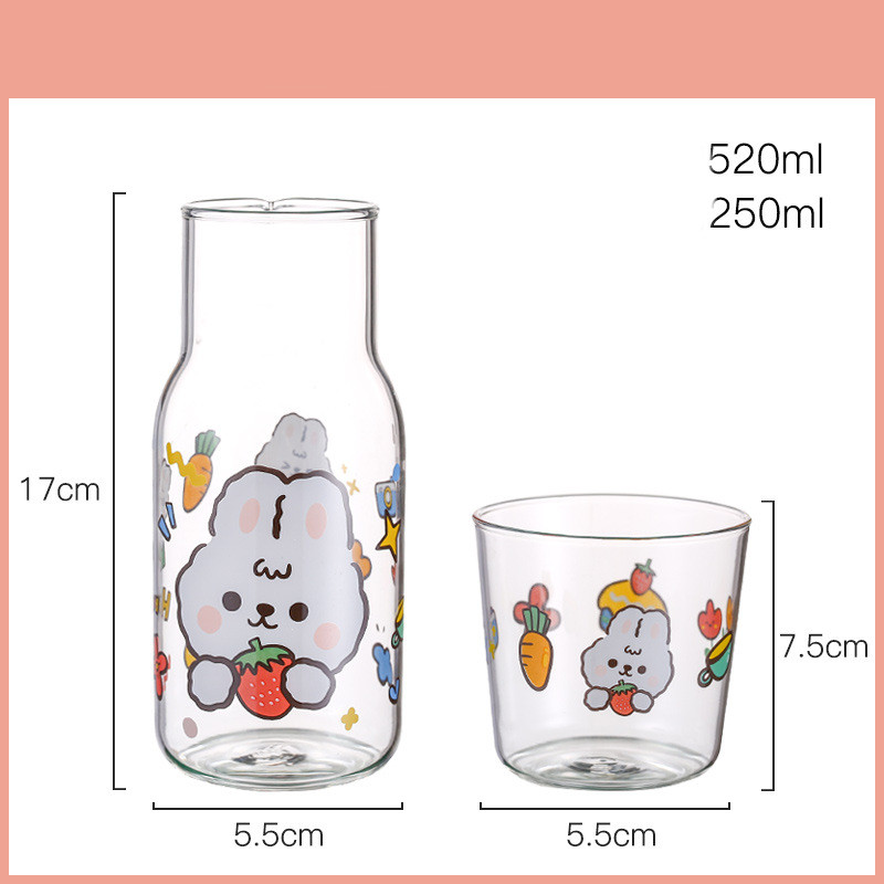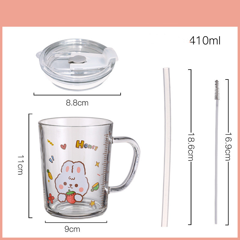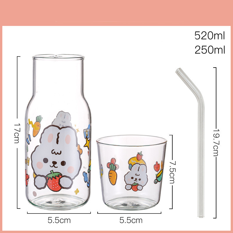 C: strawberry rabbit cup pot + glass straw,